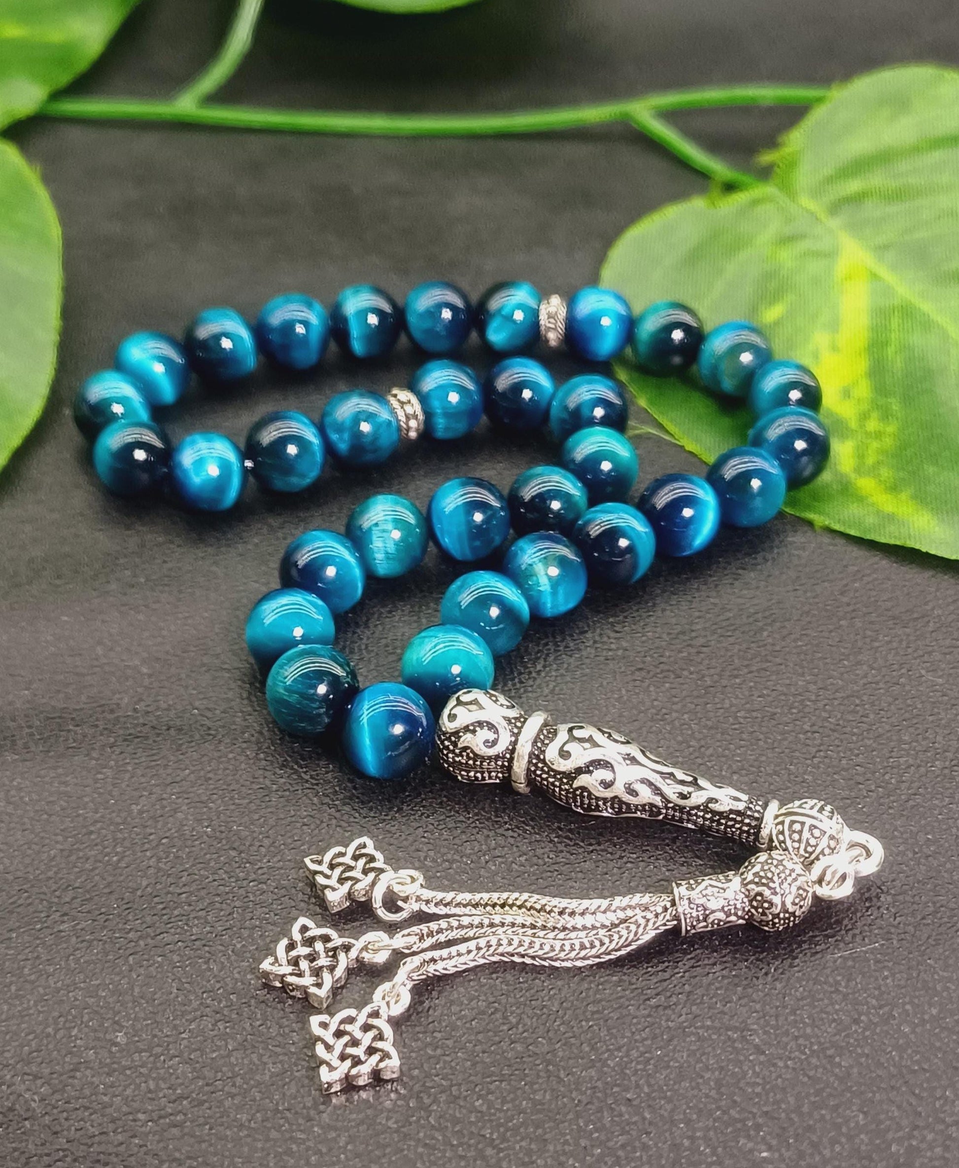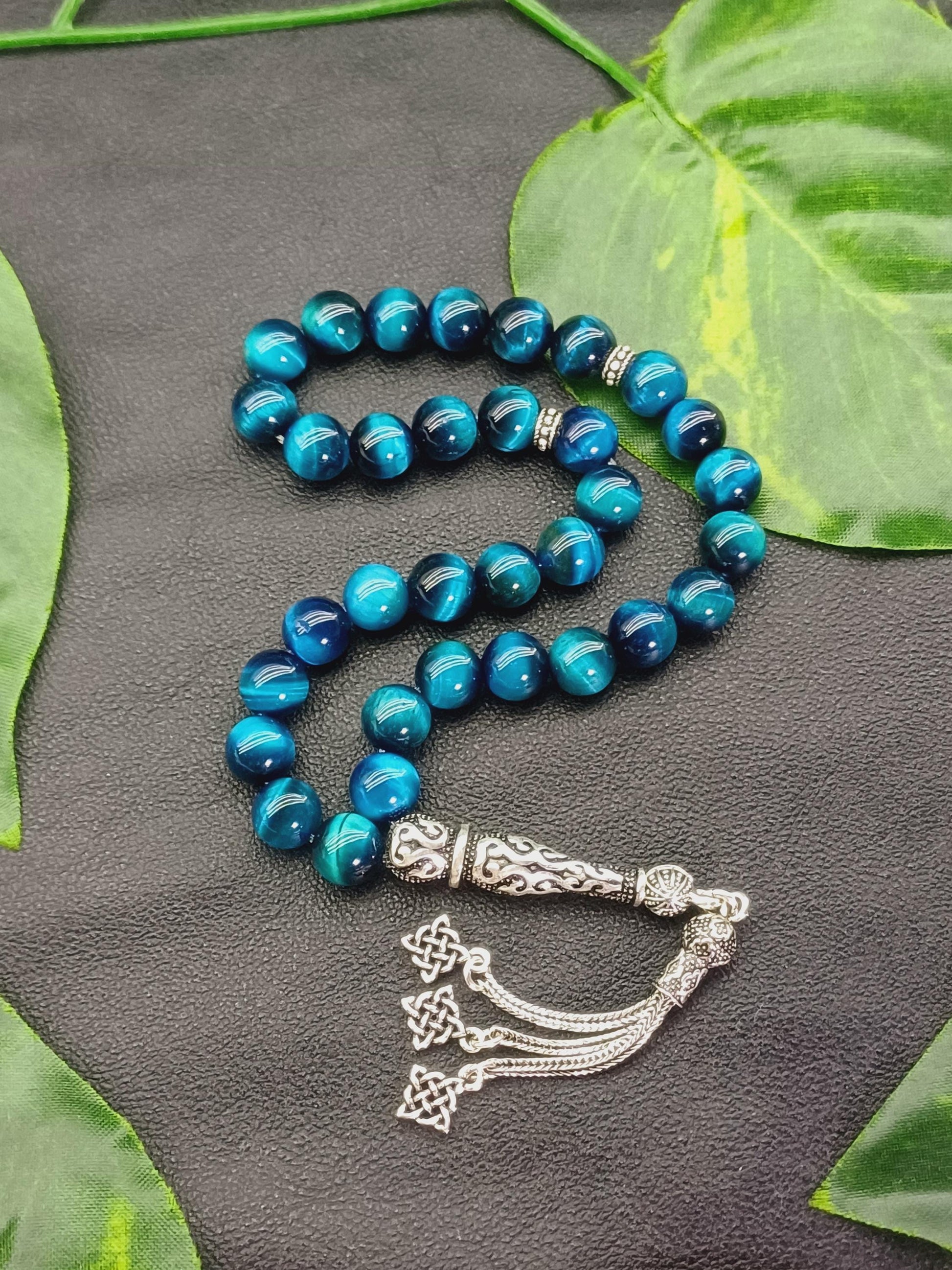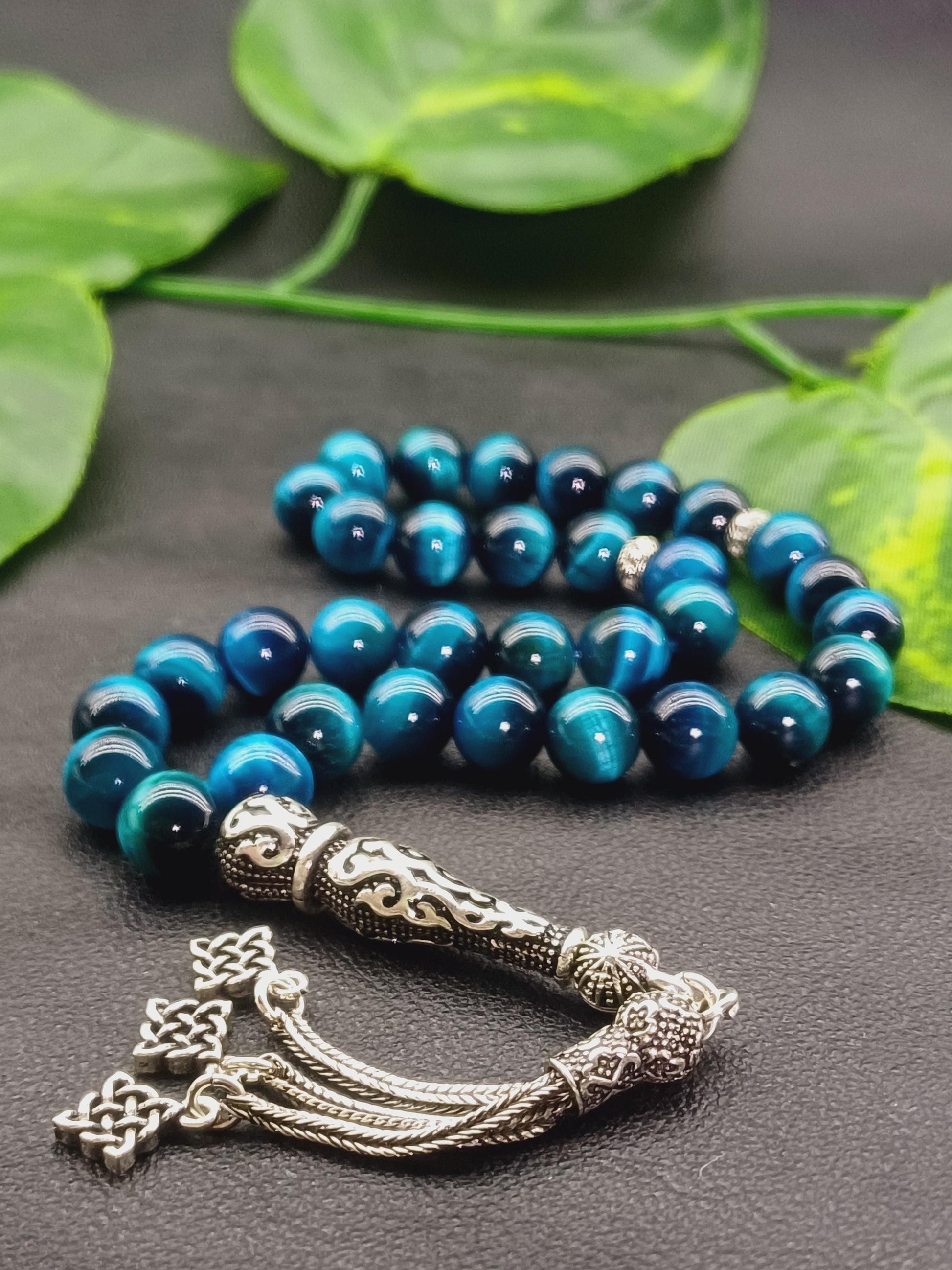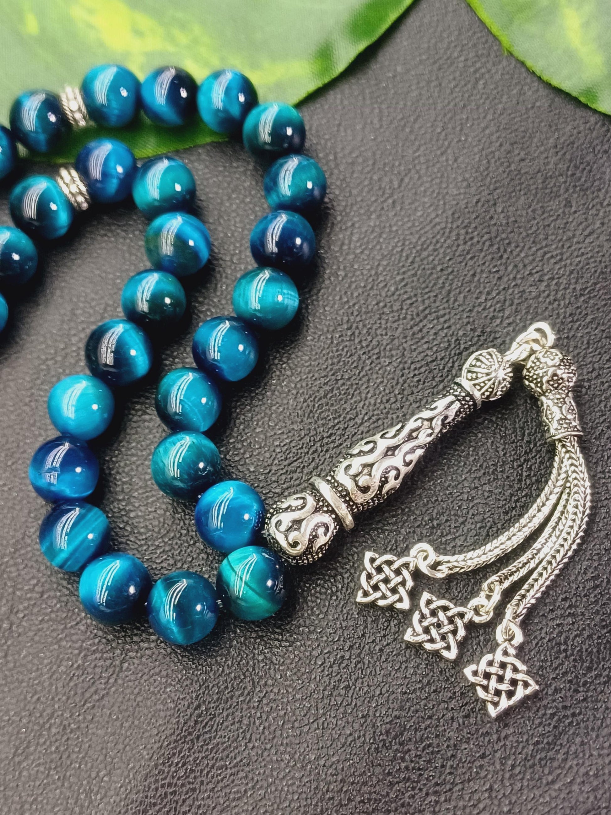 925 ayar gümüş aparatlı Okyanus Mavisi Kaplan Gözü doğal taşından yapılmış bu özel tesbih, hem şık bir aksesuar hem de enerjinizi dengelemeye yardımcı bir taş deneyimi sunar.