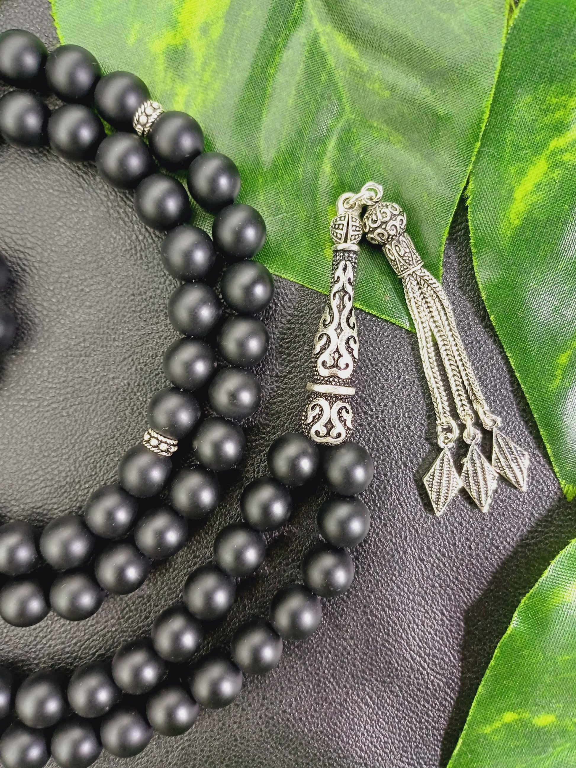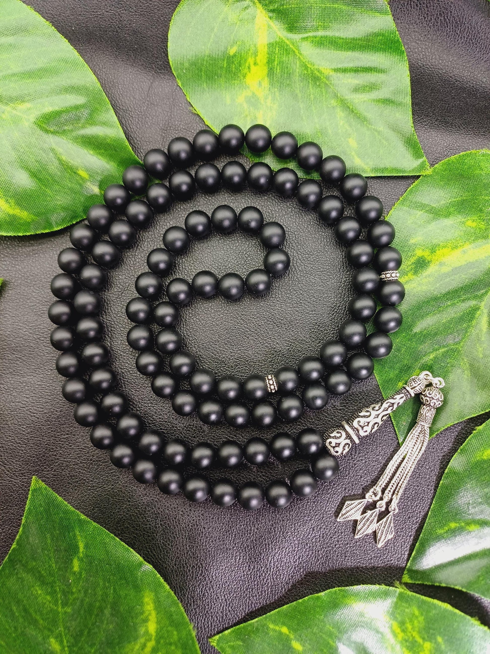Mat Siyah Oniks doğal taşından yapılmış, 925 ayar gümüş aparatlı bu özel tesbih, hem şık bir aksesuar hem de enerjinizi dengelemeye yardımcı bir taş deneyimi sunar.