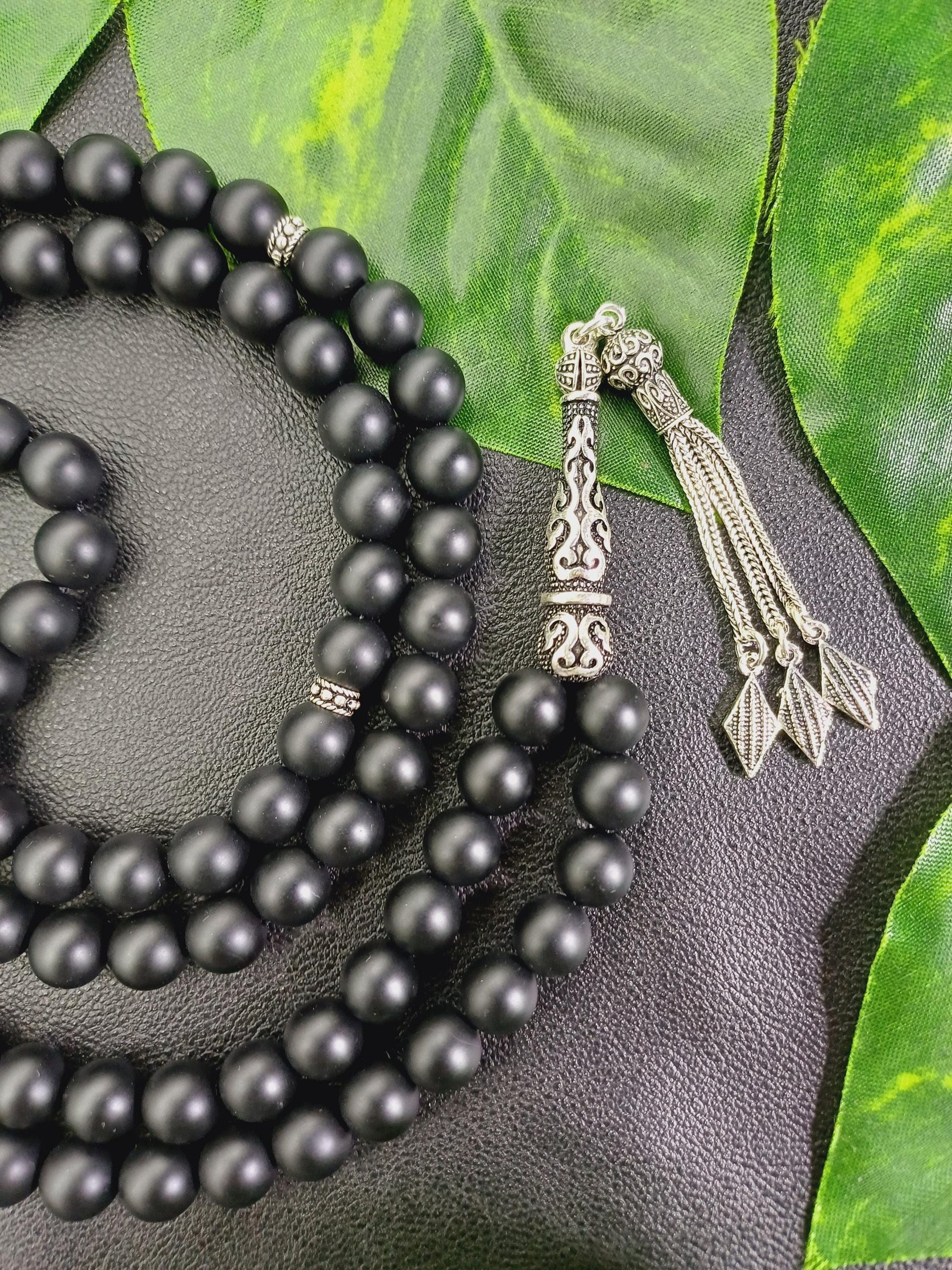 925 Ayar Gümüş Mat Siyah Oniks Tesbih