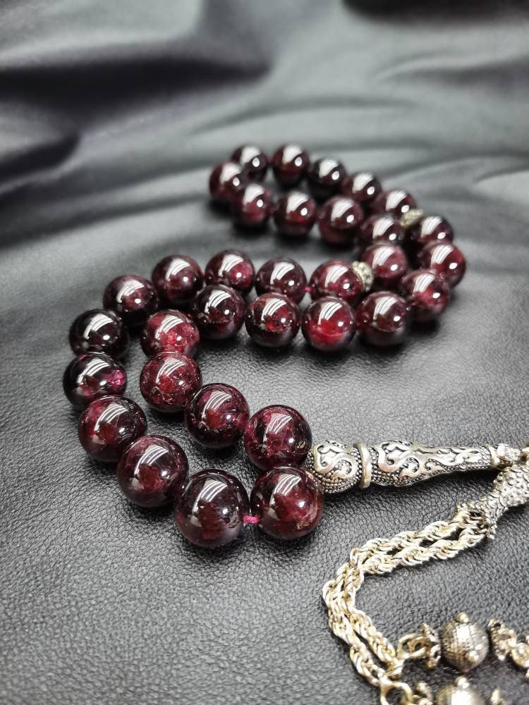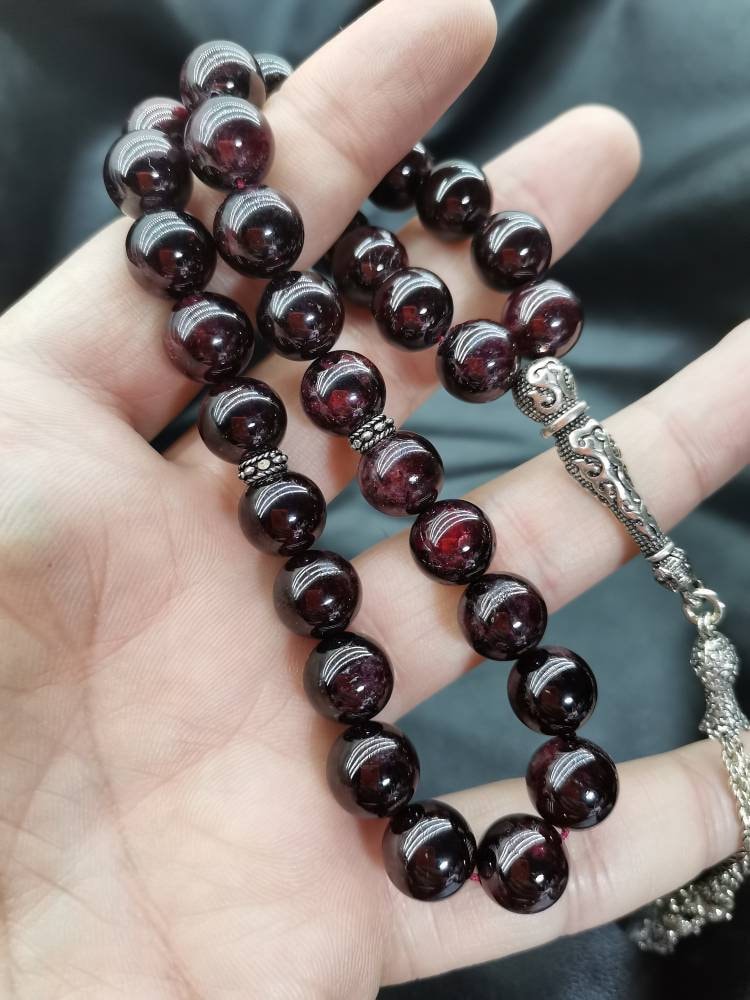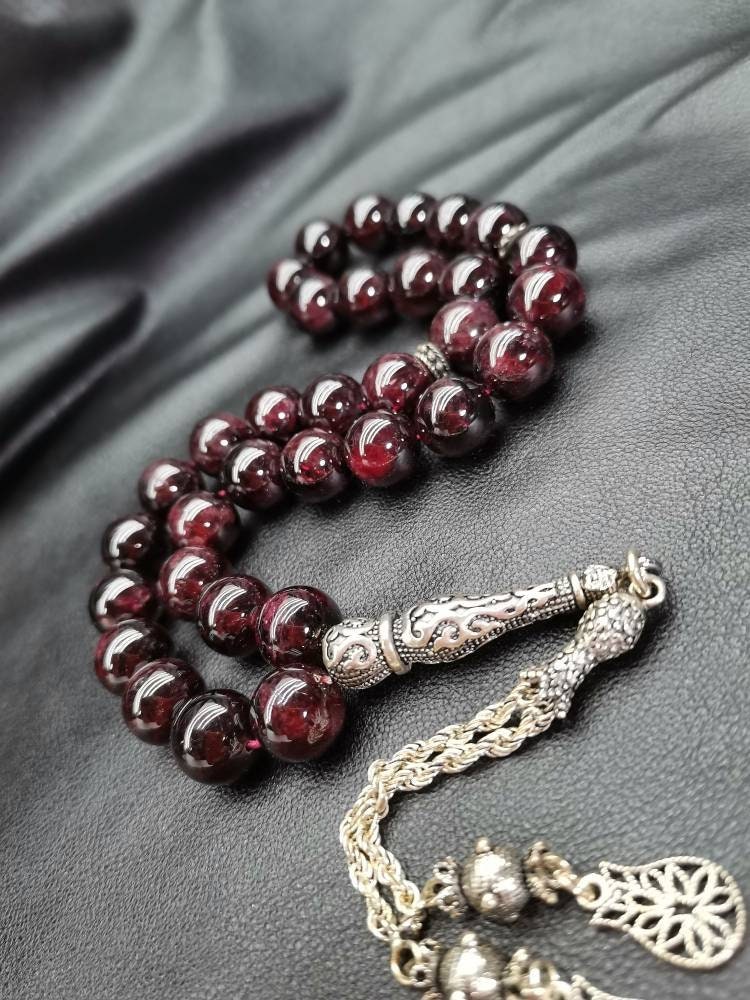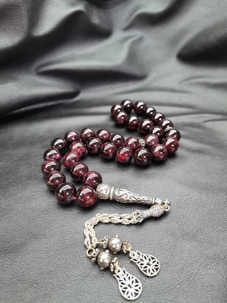 Lal taşı (garnet, granat) doğal taşından yapılmış, 925 ayar gümüş aparatlı Arnavut püsküllü bu özel tesbih, hem şık bir aksesuar hem de enerjinizi dengelemeye yardımcı bir taş deneyimi sunar.