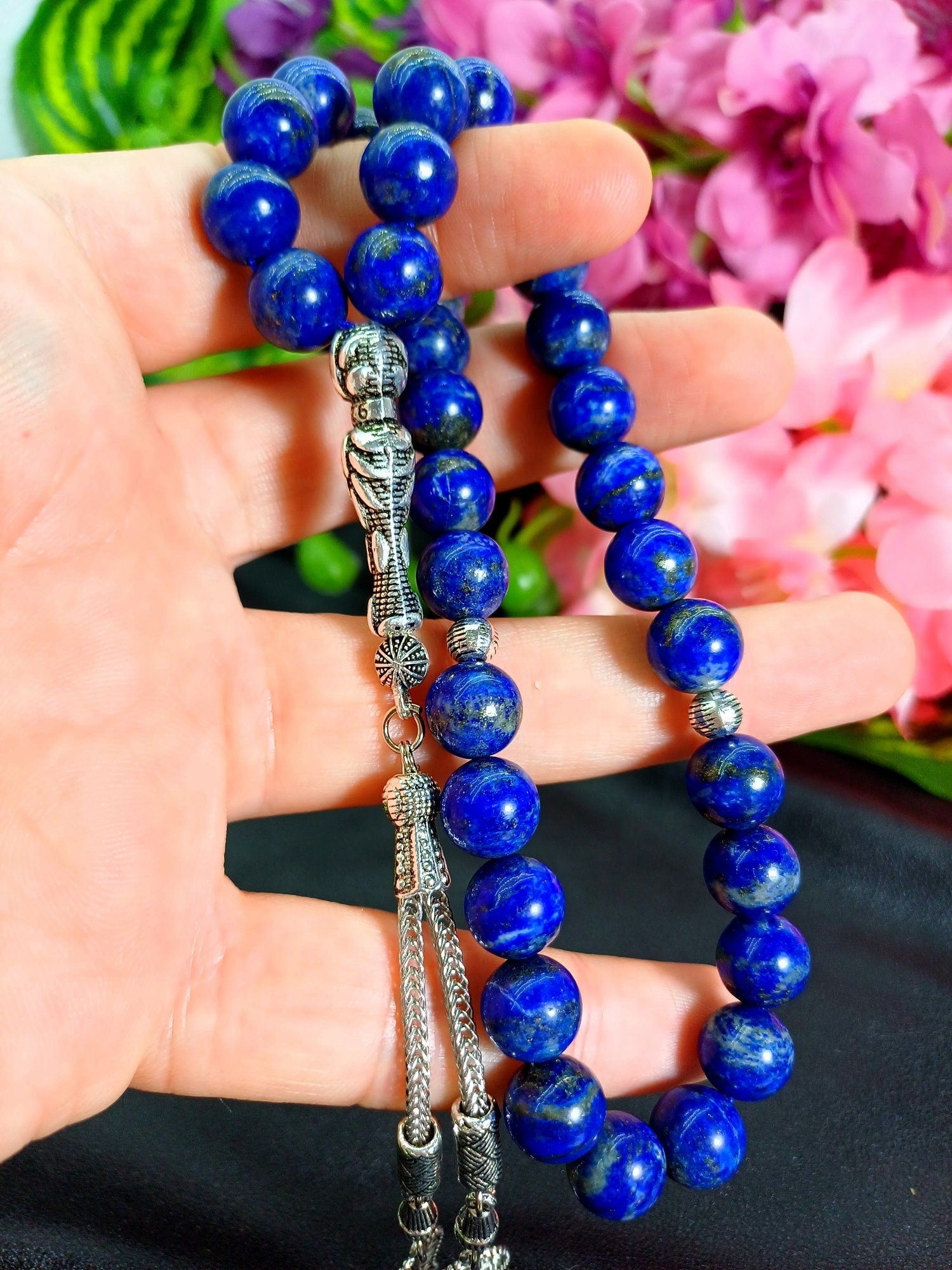 Premium kalitede 10 mm Lapis Lazuli doğal taşından yapılmış bu özel tesbih, hem şık bir aksesuar hem de enerjinizi dengelemeye yardımcı bir taş deneyimi sunar.