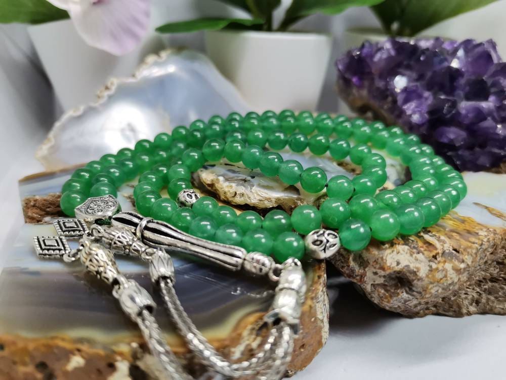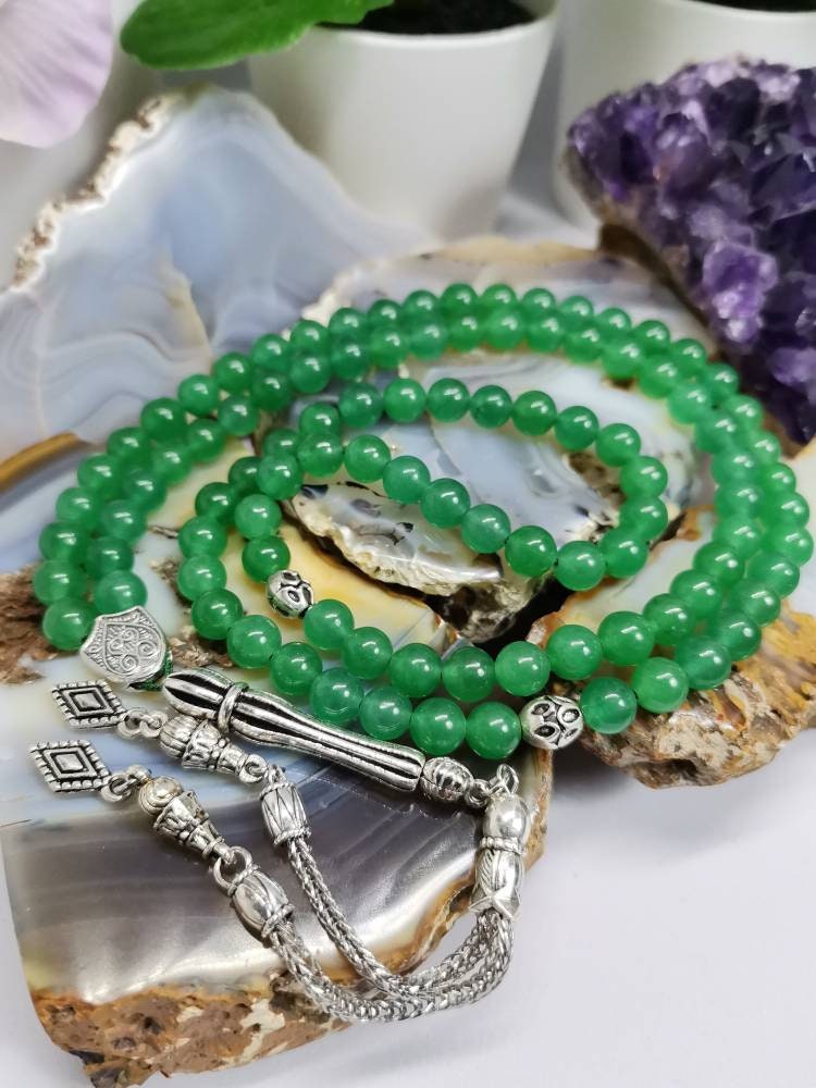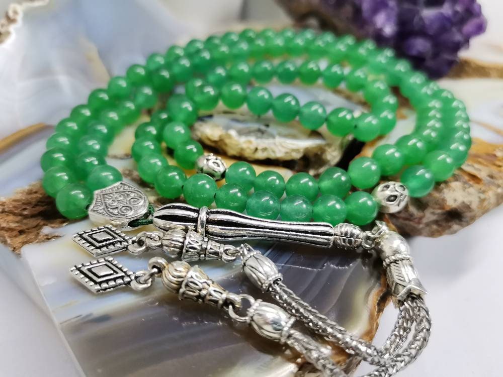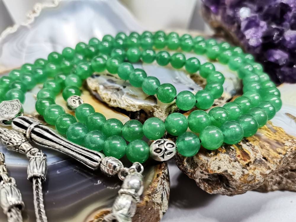 Aventurin doğal taşından yapılmış bu özel tesbih, hem şık bir aksesuar hem de enerjinizi dengelemeye yardımcı bir taş deneyimi sunar.
