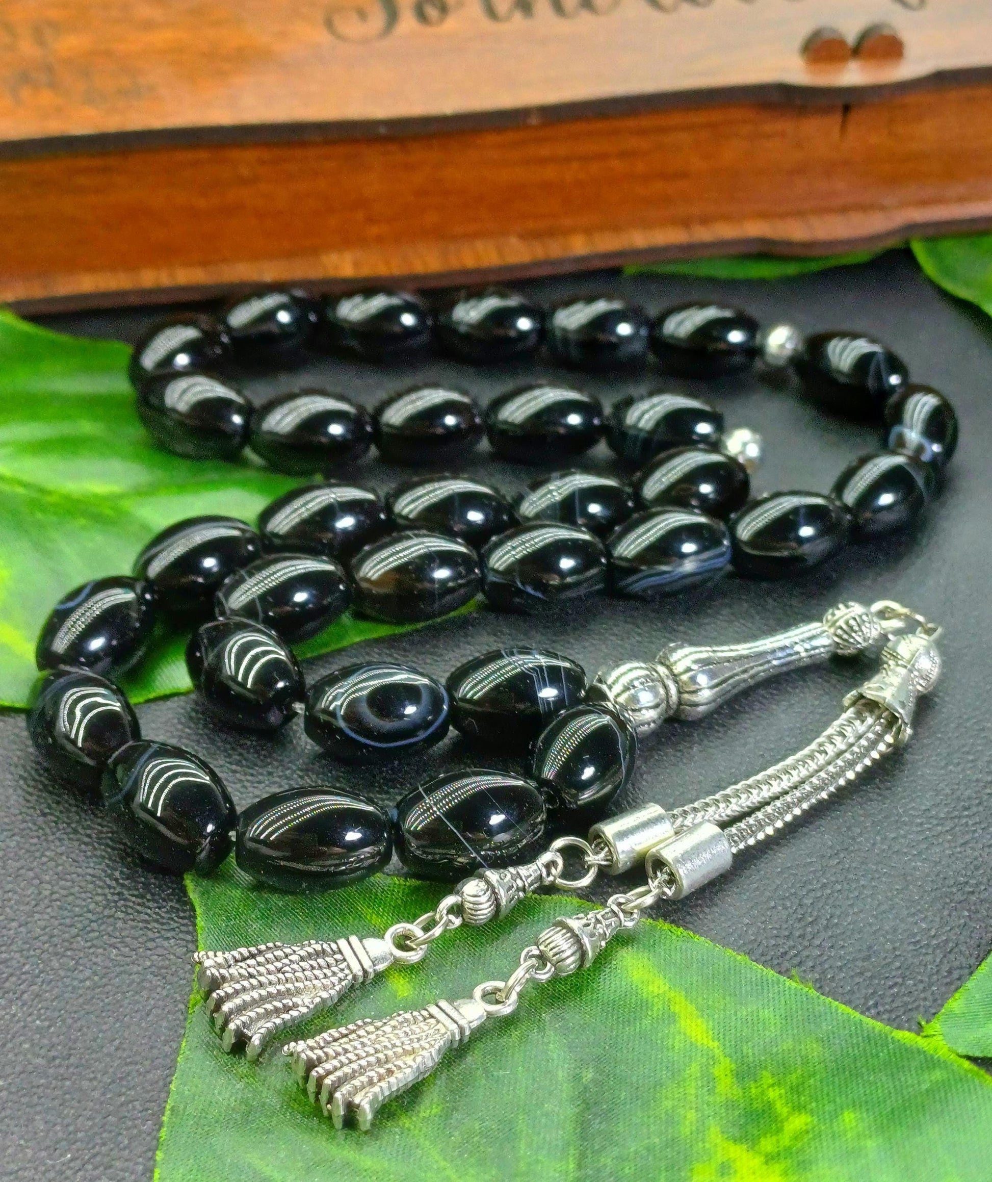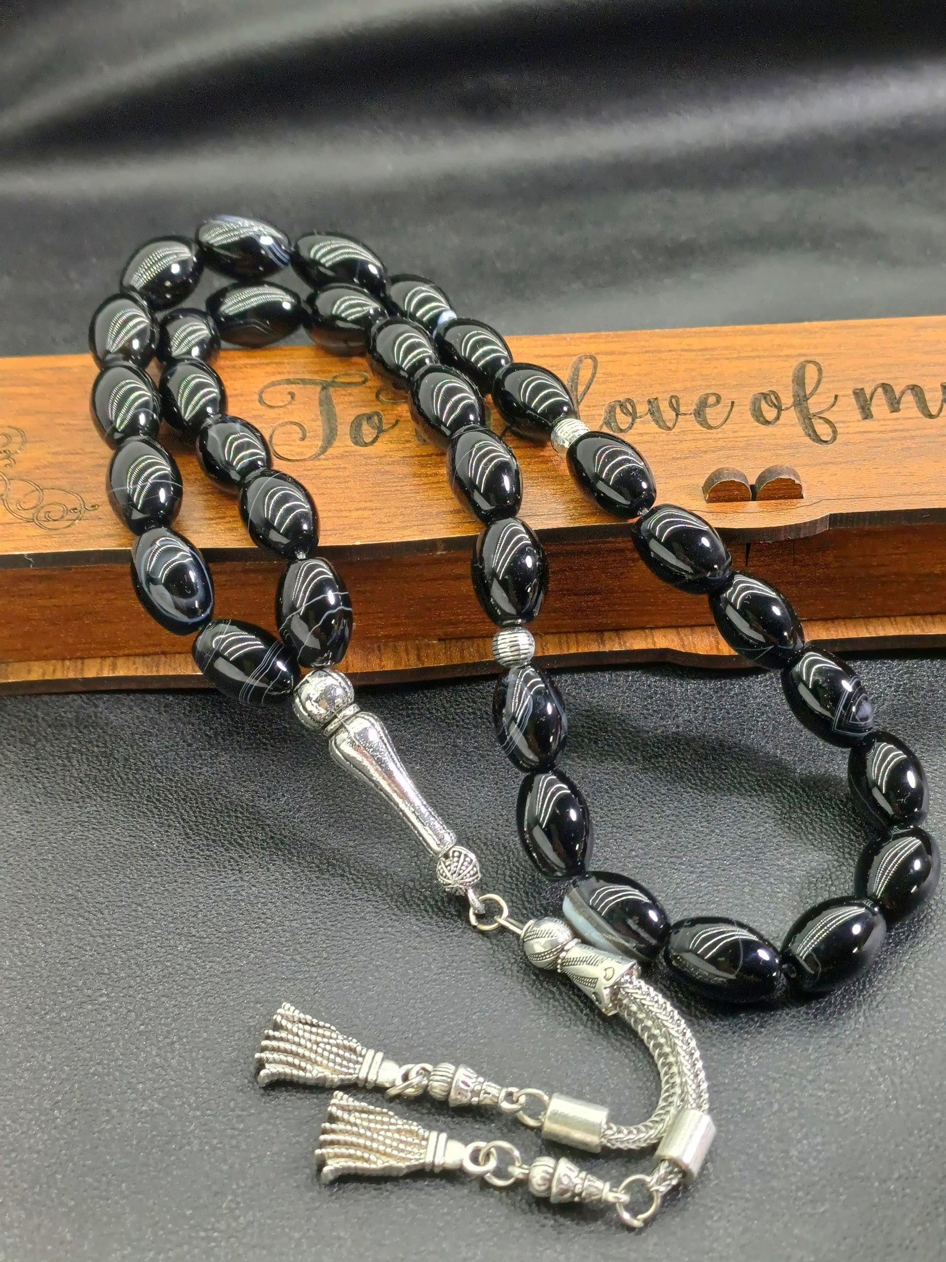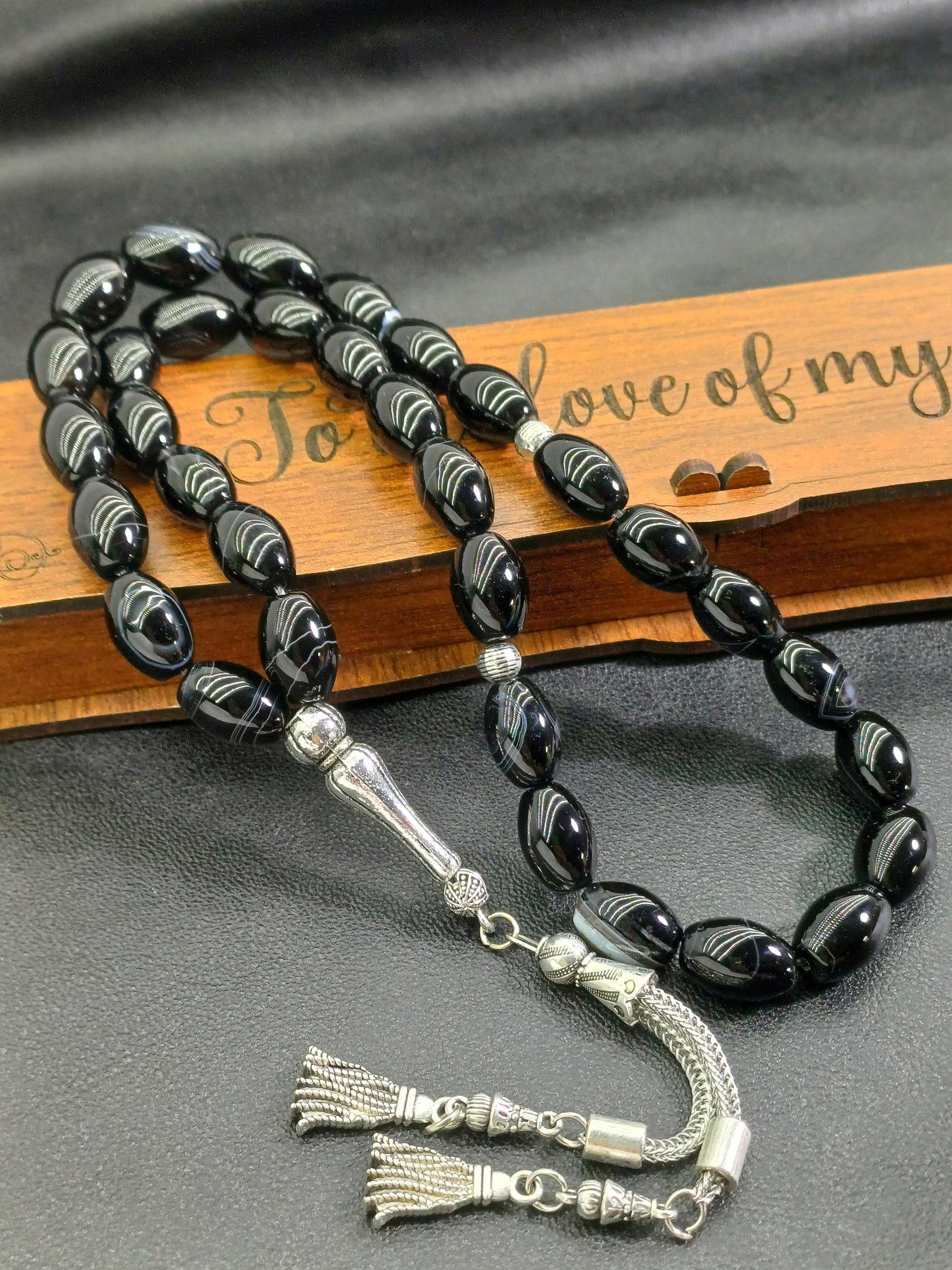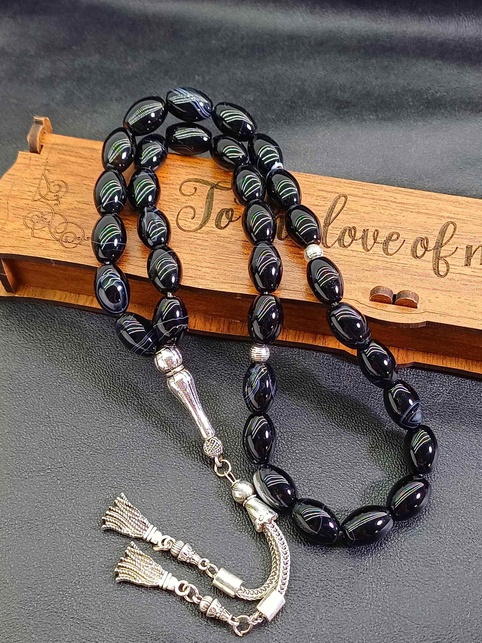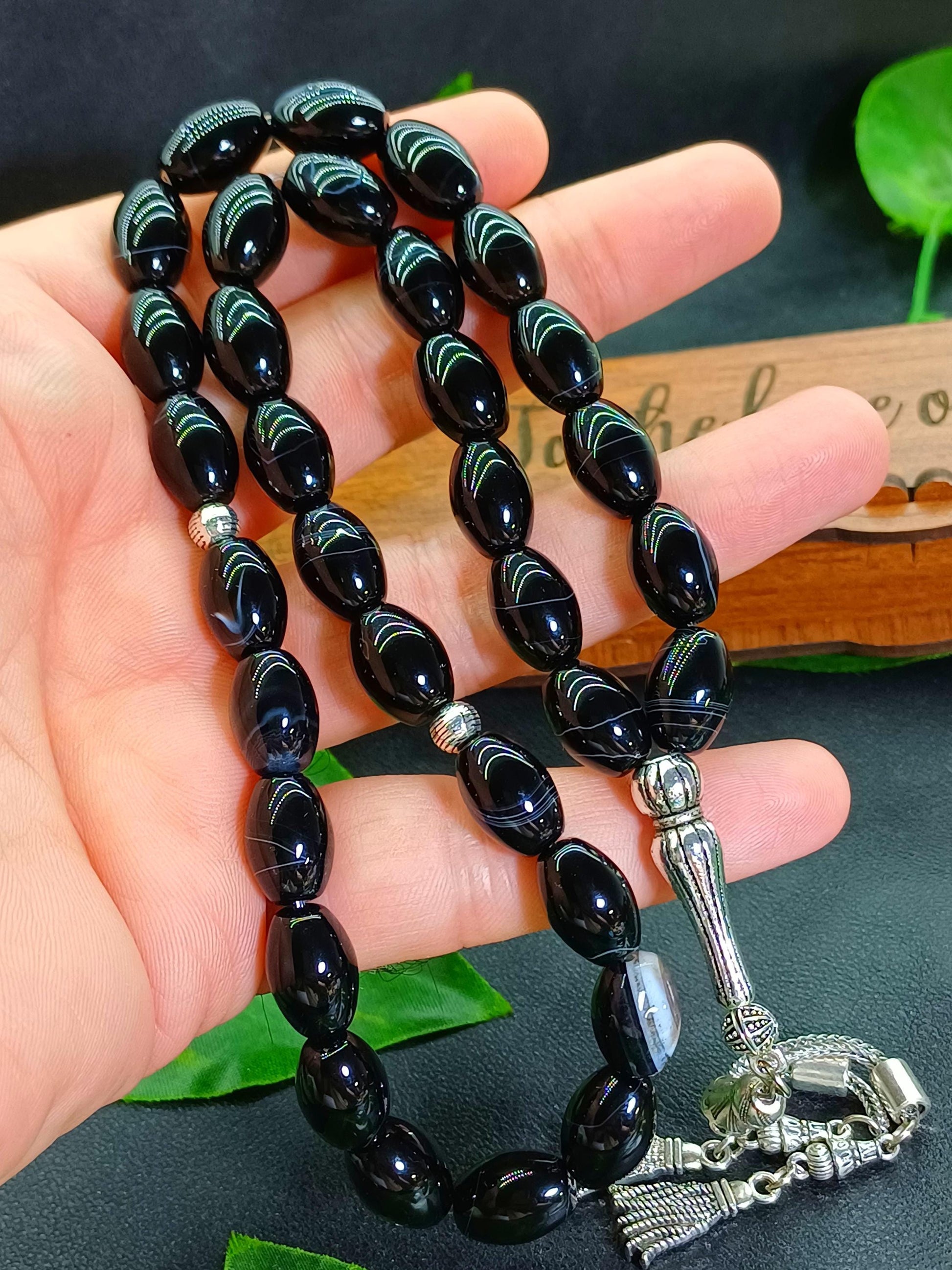 Arpa Kesim Siyah Akik Doğaltaş Tesbih