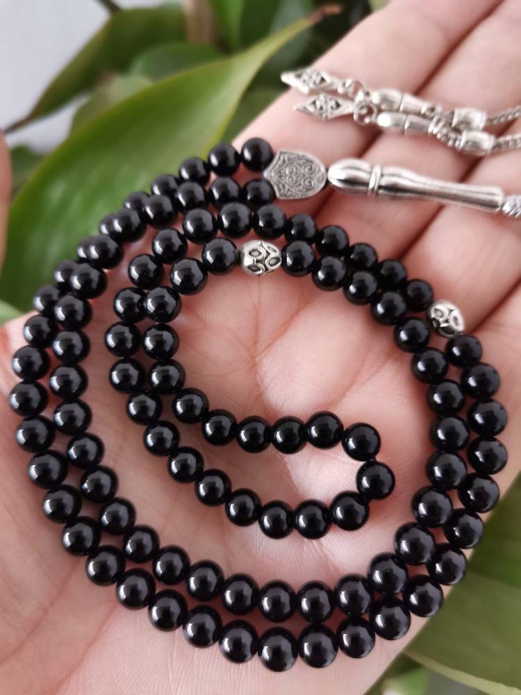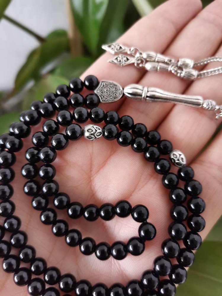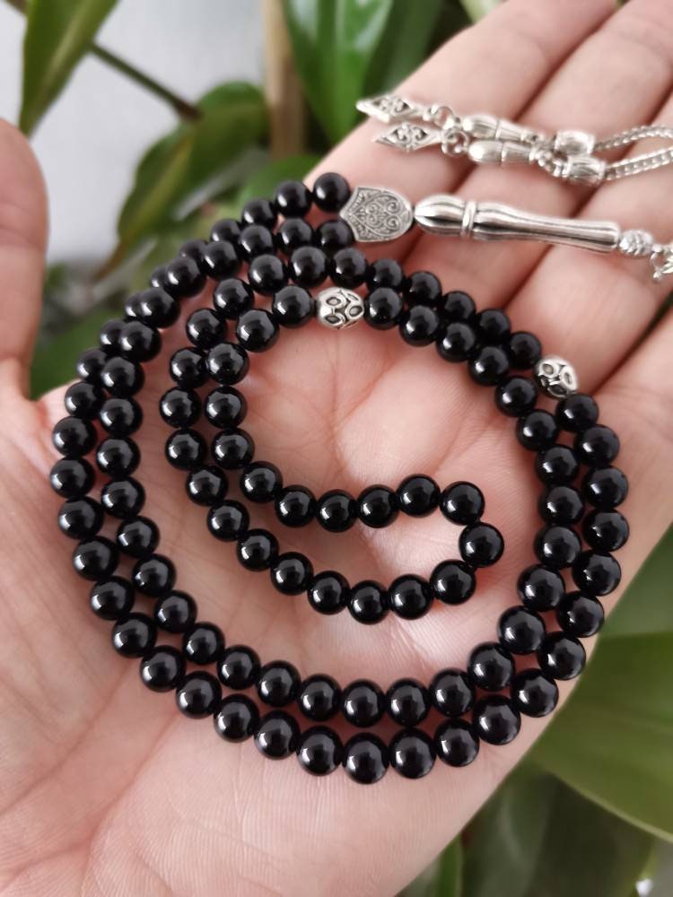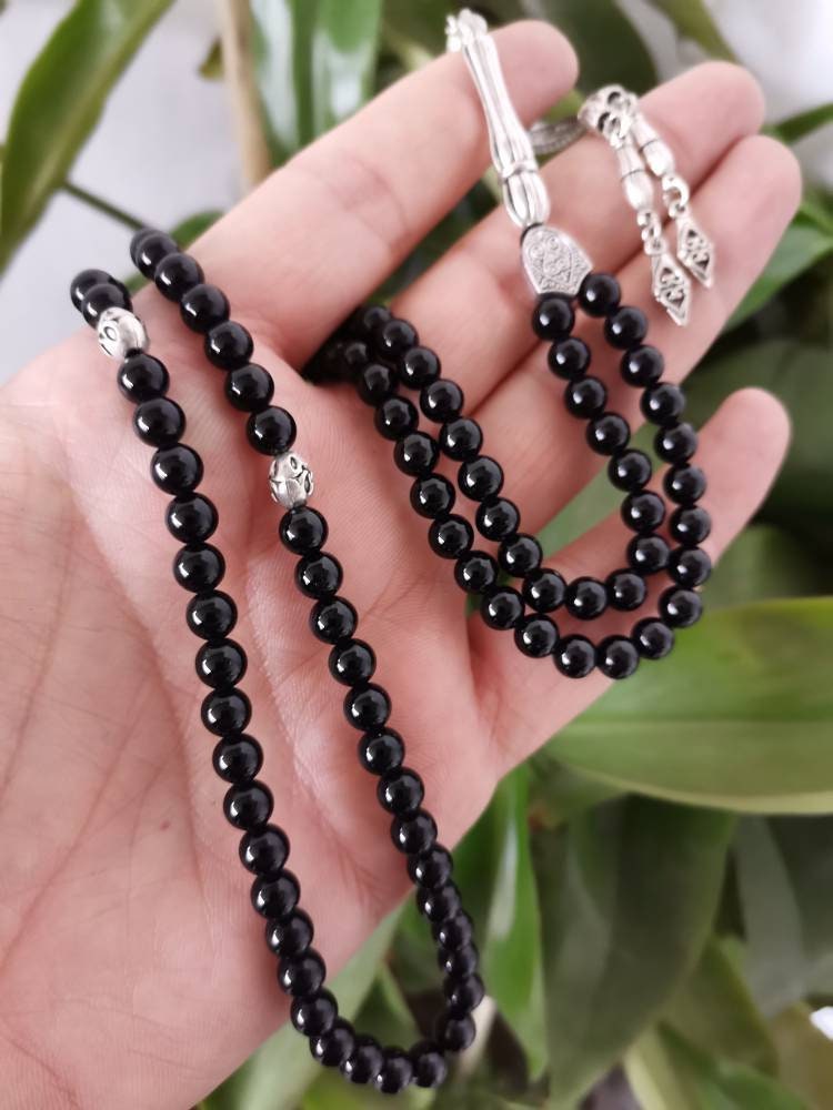 Siyah Oniks doğal taşından yapılmış bu özel tesbih, hem şık bir aksesuar hem de enerjinizi dengelemeye yardımcı bir taş deneyimi sunar.