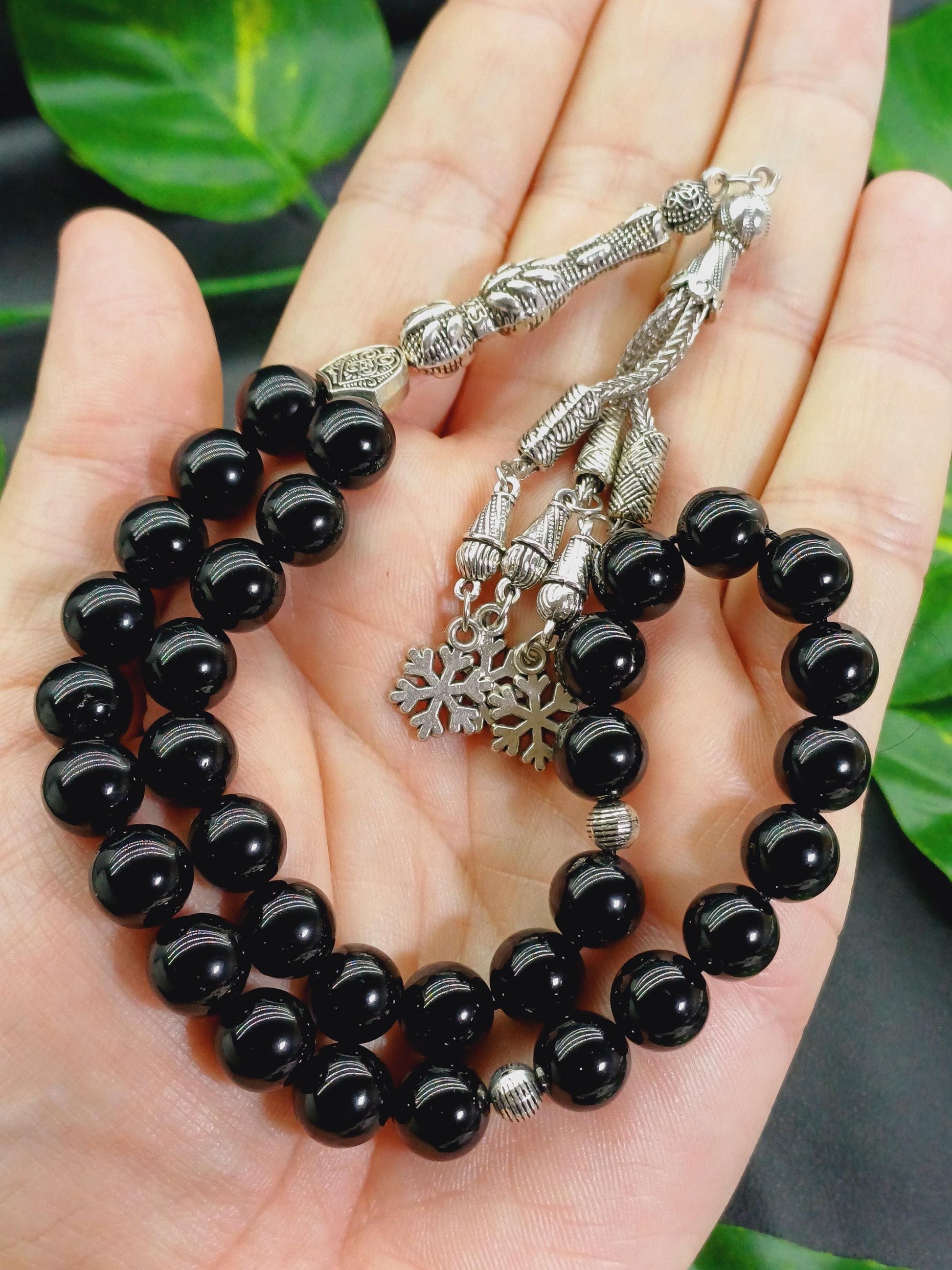 10 mm Siyah Turmalin doğal taşından yapılmış bu özel tesbih, hem şık bir aksesuar hem de enerjinizi dengelemeye yardımcı bir taş deneyimi sunar. Kişiye özel ahşap kutu seçeneği ile hediye için de idealdir.