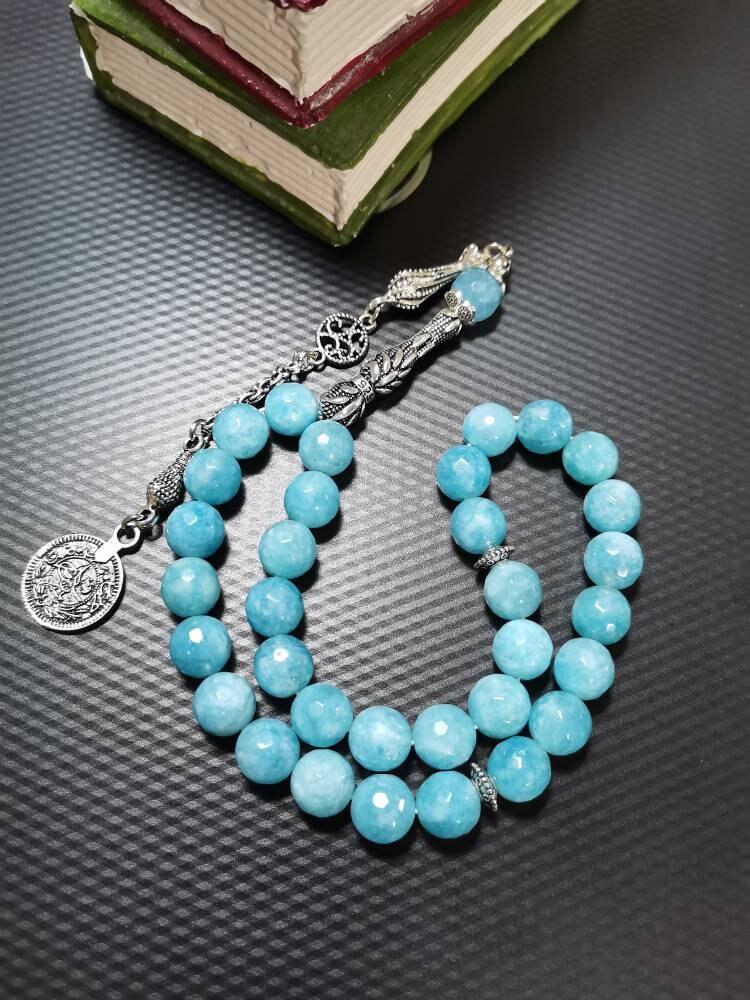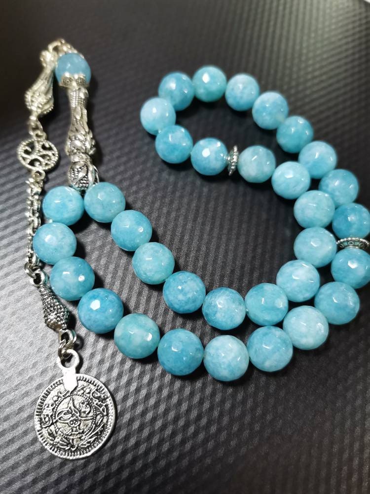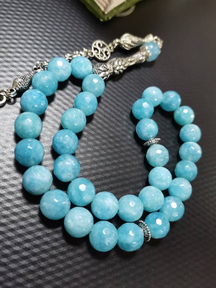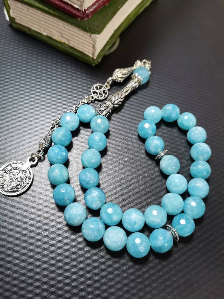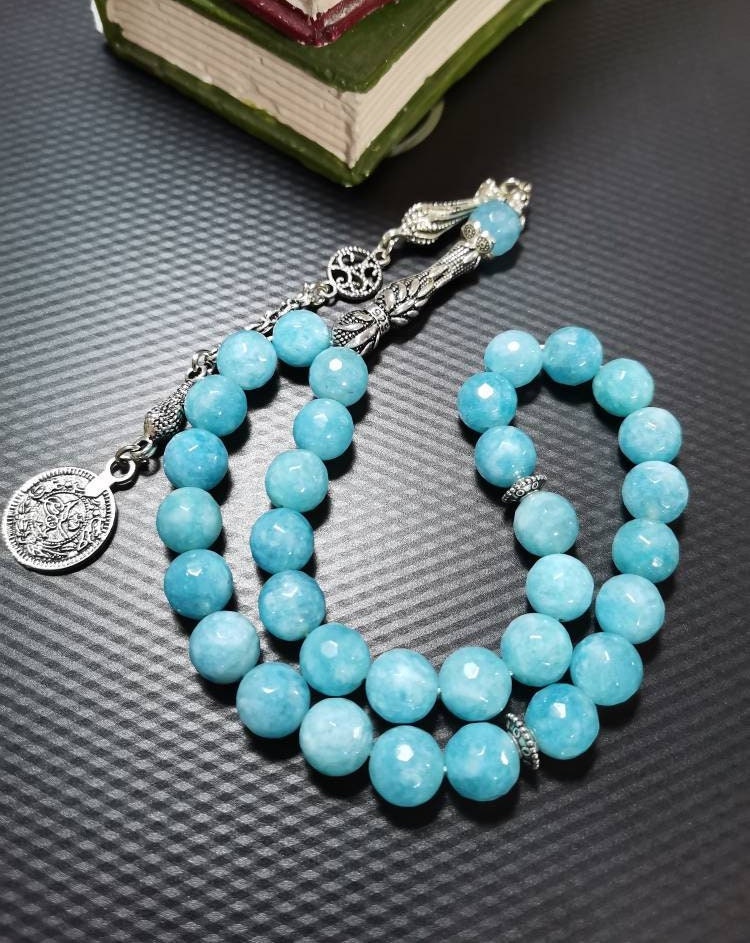Mavi Kuvars doğal taşından yapılmış bu özel tesbih, hem şık bir aksesuar hem de enerjinizi dengelemeye yardımcı bir taş deneyimi sunar.