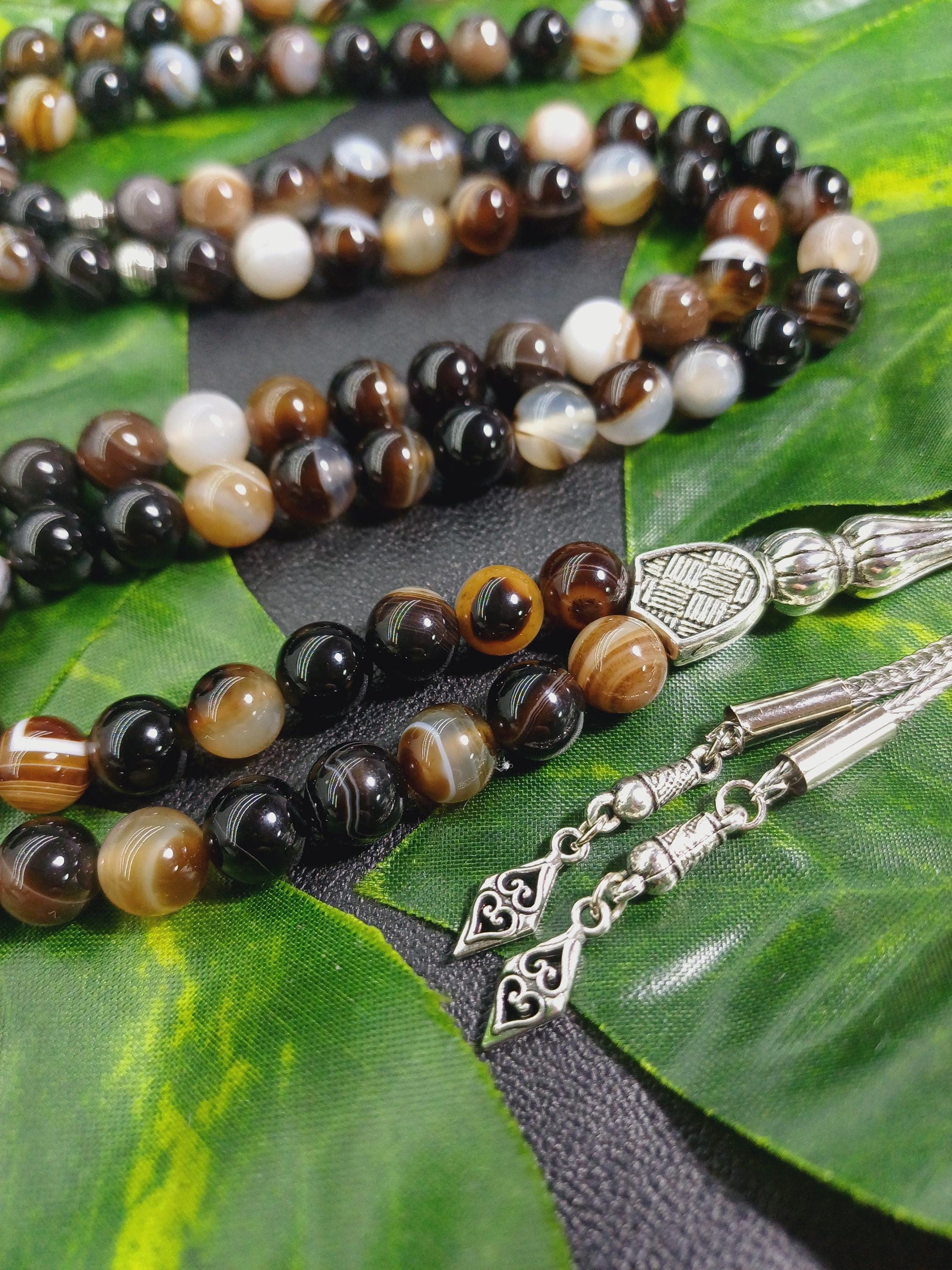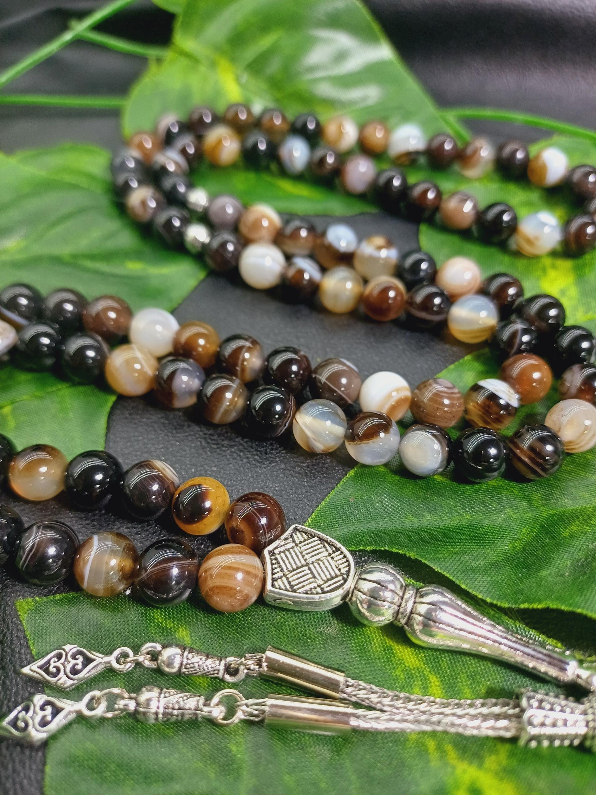 Kahverengi Akik doğal taşından yapılmış bu özel tesbih, hem şık bir aksesuar hem de enerjinizi dengelemeye yardımcı bir taş deneyimi sunar.