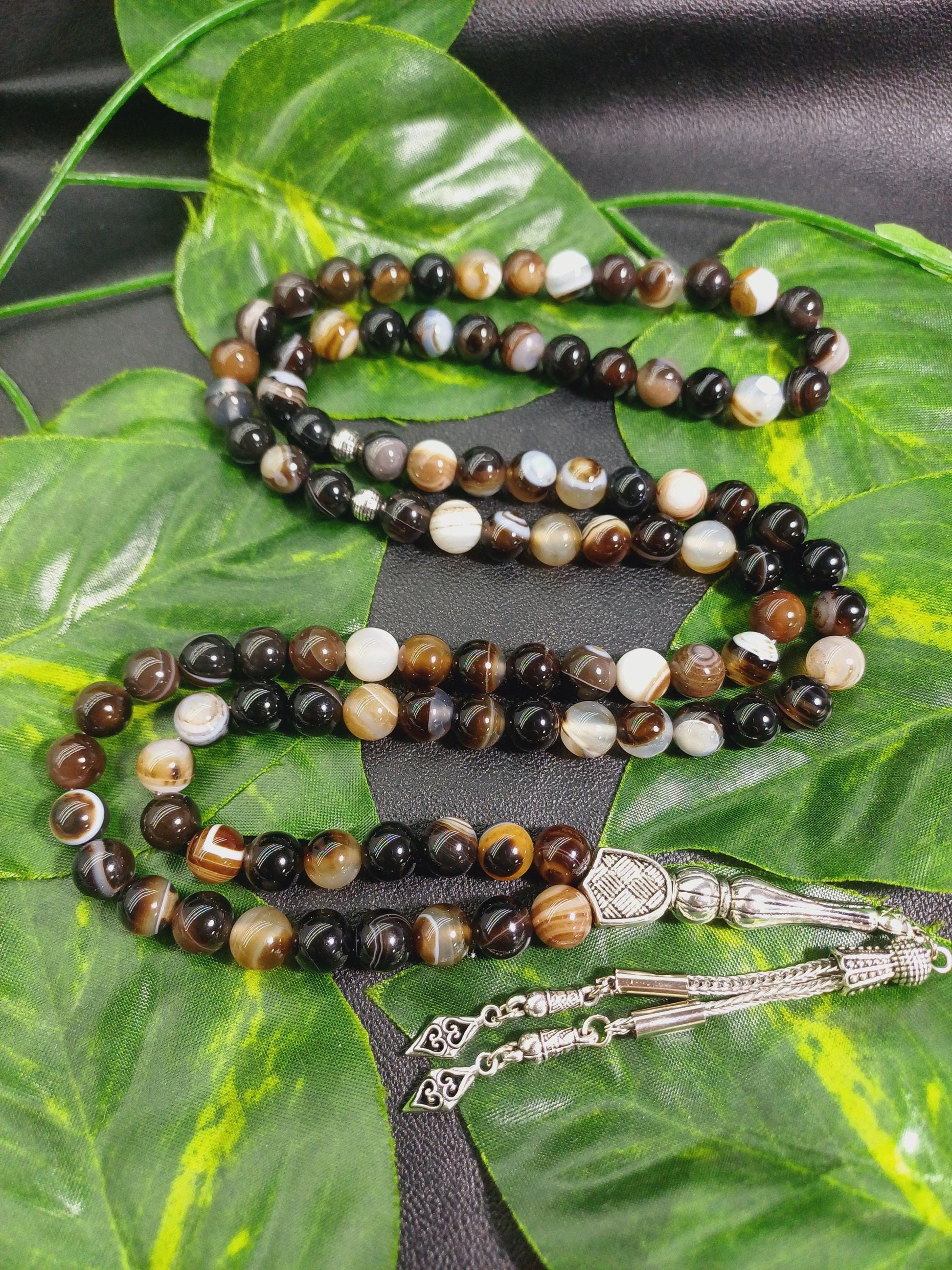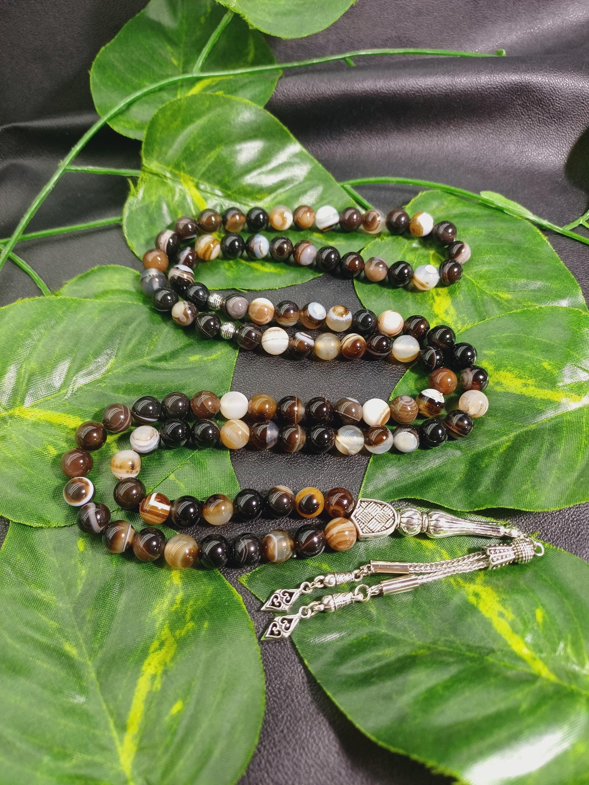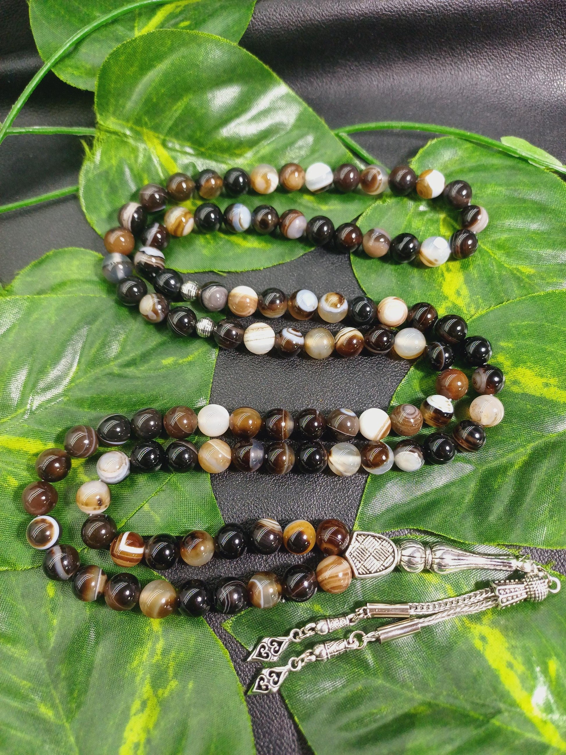 99 Boncuklu 8 mm Kahverengi Akik Tesbih