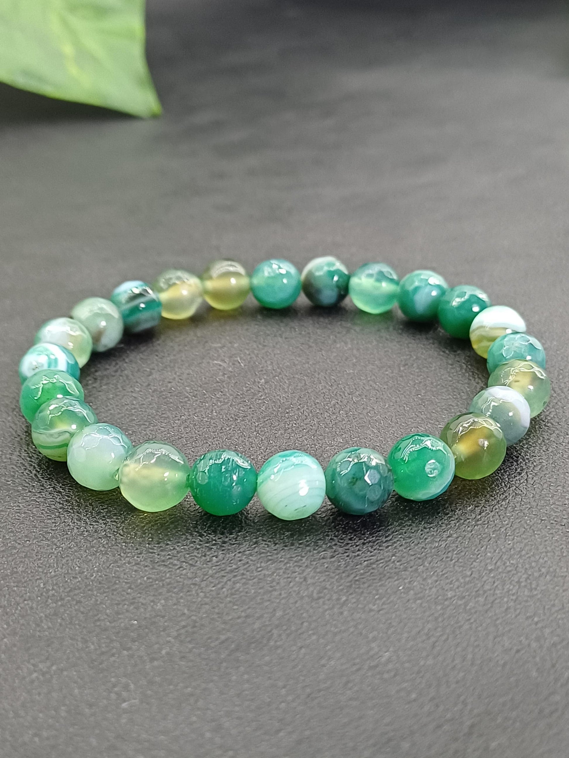 Madagaskar Yeşil Akik doğal taşından yapılmış bu özel bileklik, hem şık bir aksesuar hem de enerjinizi dengelemeye yardımcı bir taş deneyimi sunar.