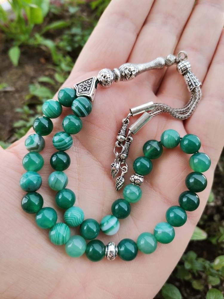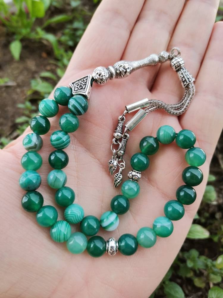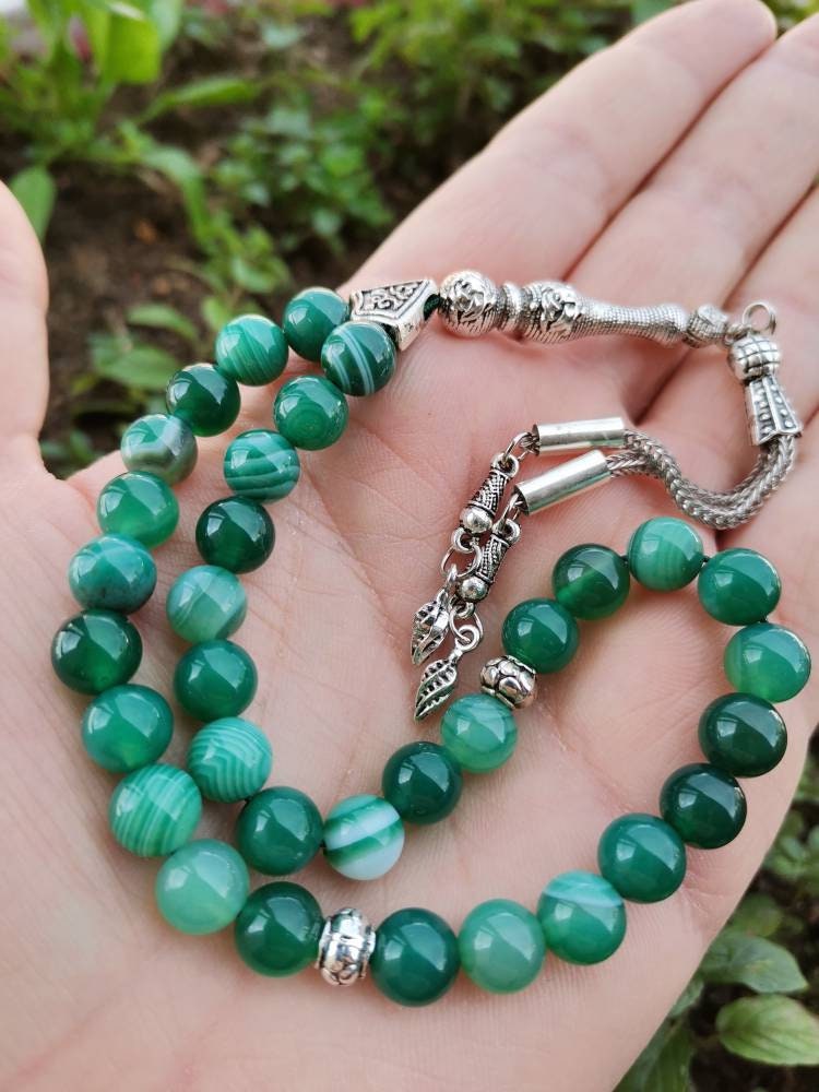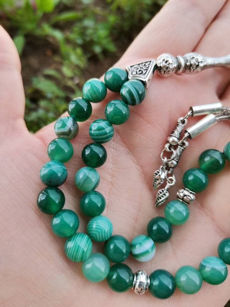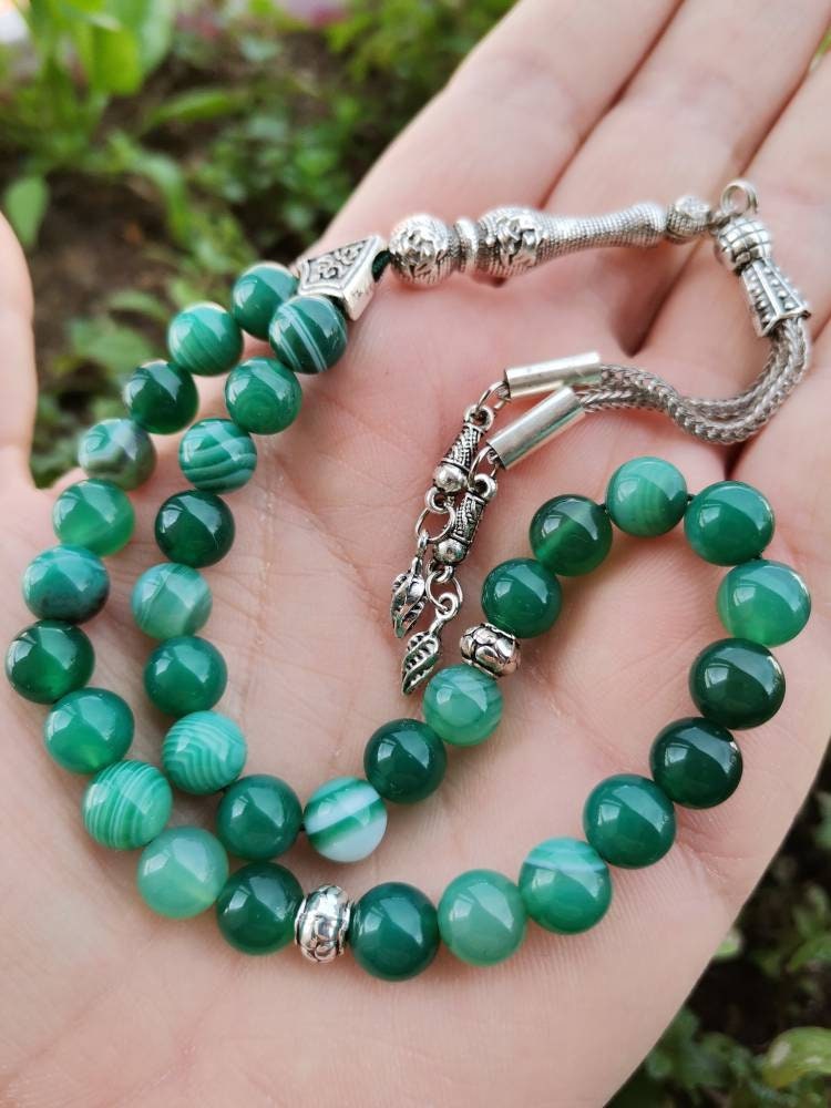 33 Boncuklu Madagaskar Yeşil Akik Tesbih