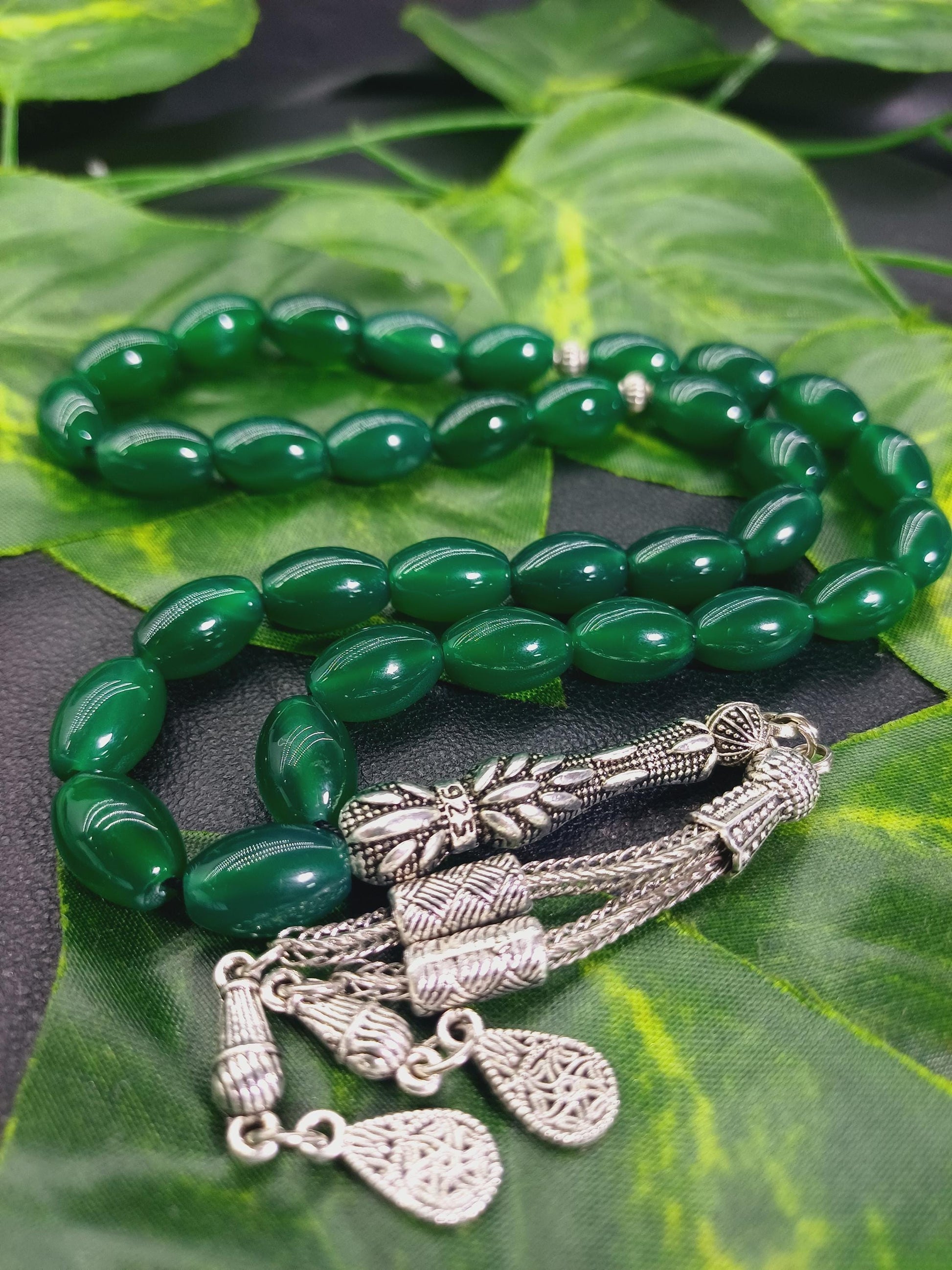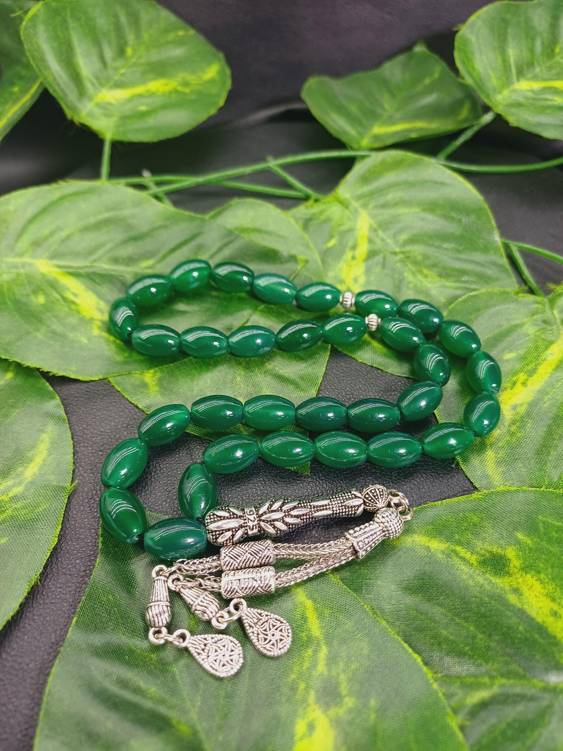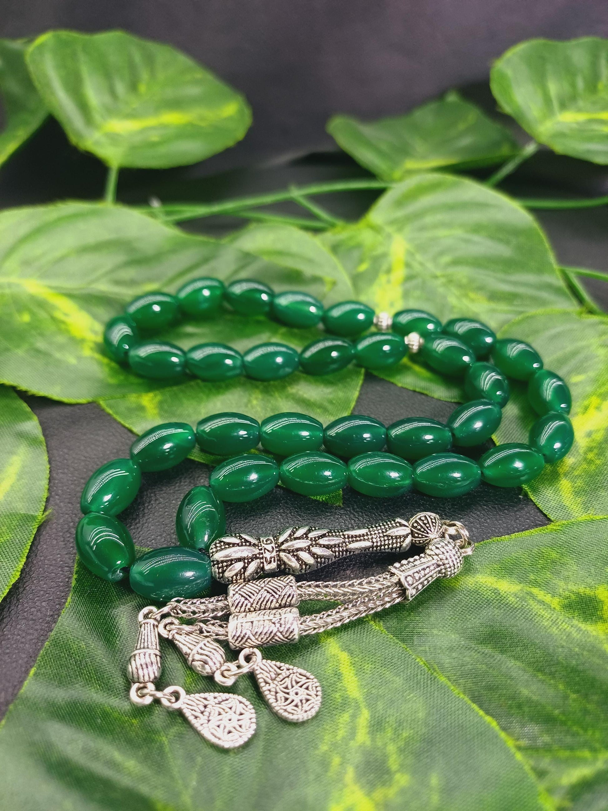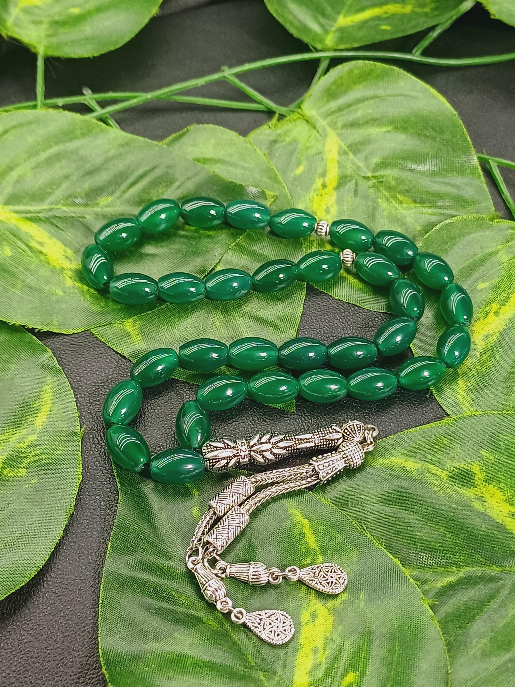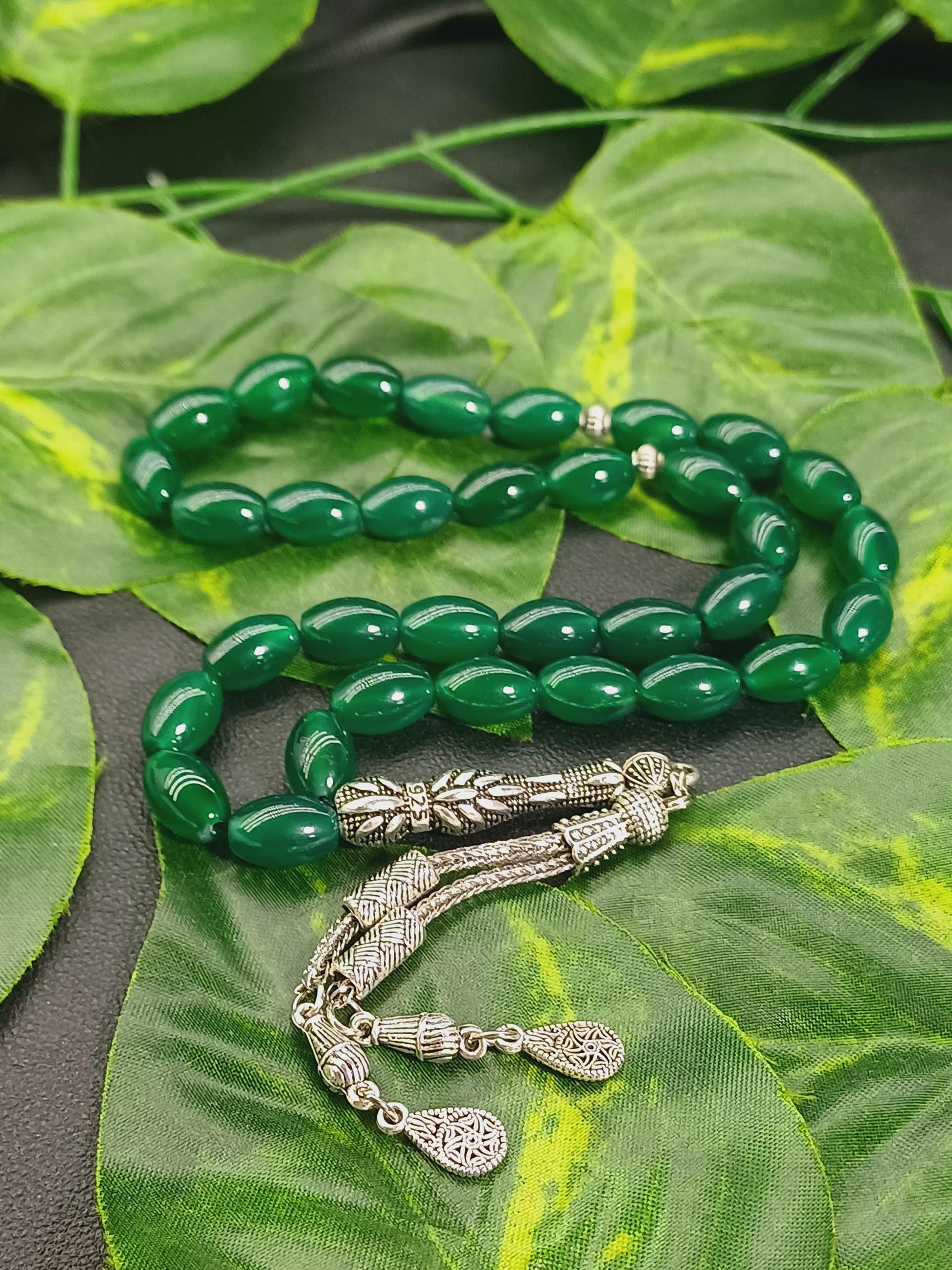 Yeşil Akik doğal taşından yapılmış bu özel tesbih, hem şık bir aksesuar hem de enerjinizi dengelemeye yardımcı bir taş deneyimi sunar.