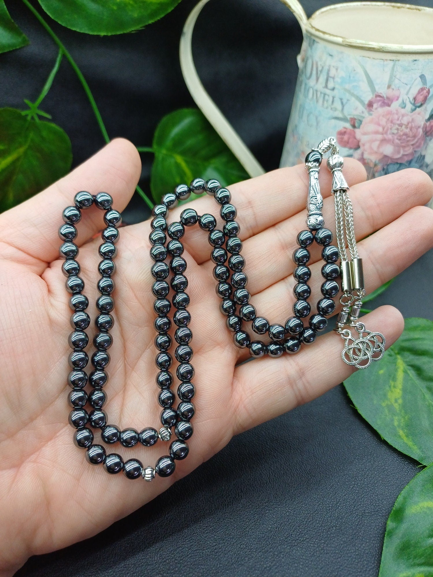 Hematit doğal taşından yapılmış bu özel tesbih, hem şık bir aksesuar hem de enerjinizi dengelemeye yardımcı bir taş deneyimi sunar.