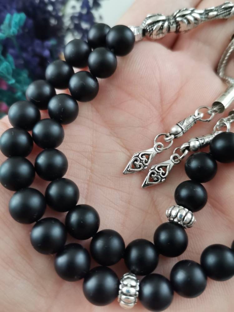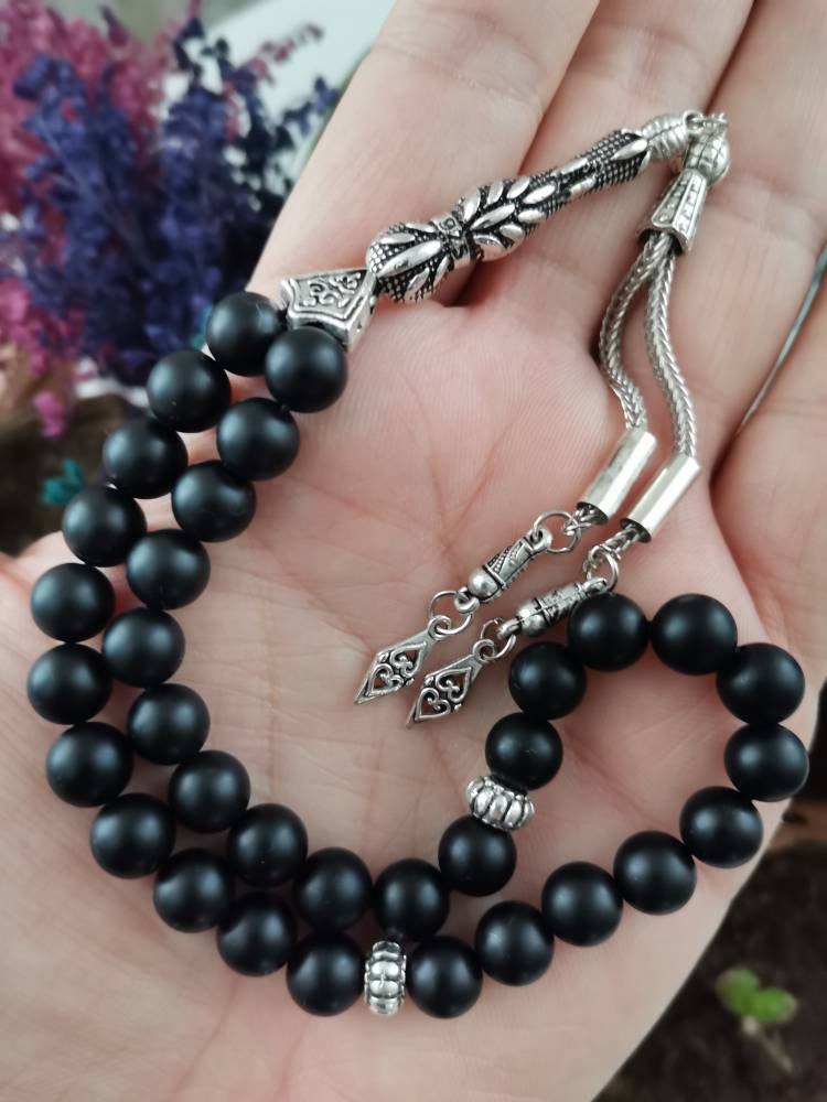 Mat Siyah Oniks doğal taşından yapılmış bu özel tesbih, hem şık bir aksesuar hem de enerjinizi dengelemeye yardımcı bir taş deneyimi sunar.