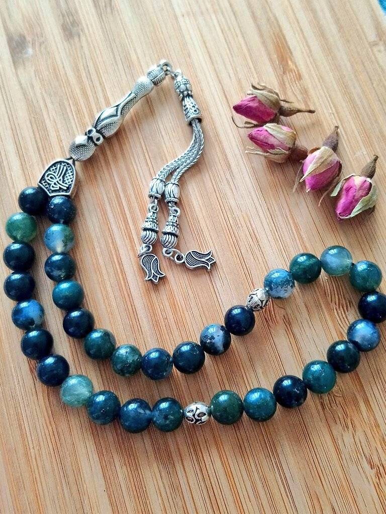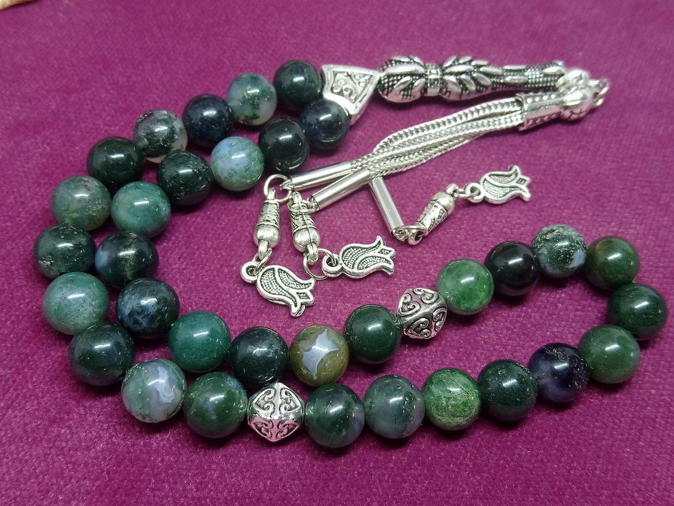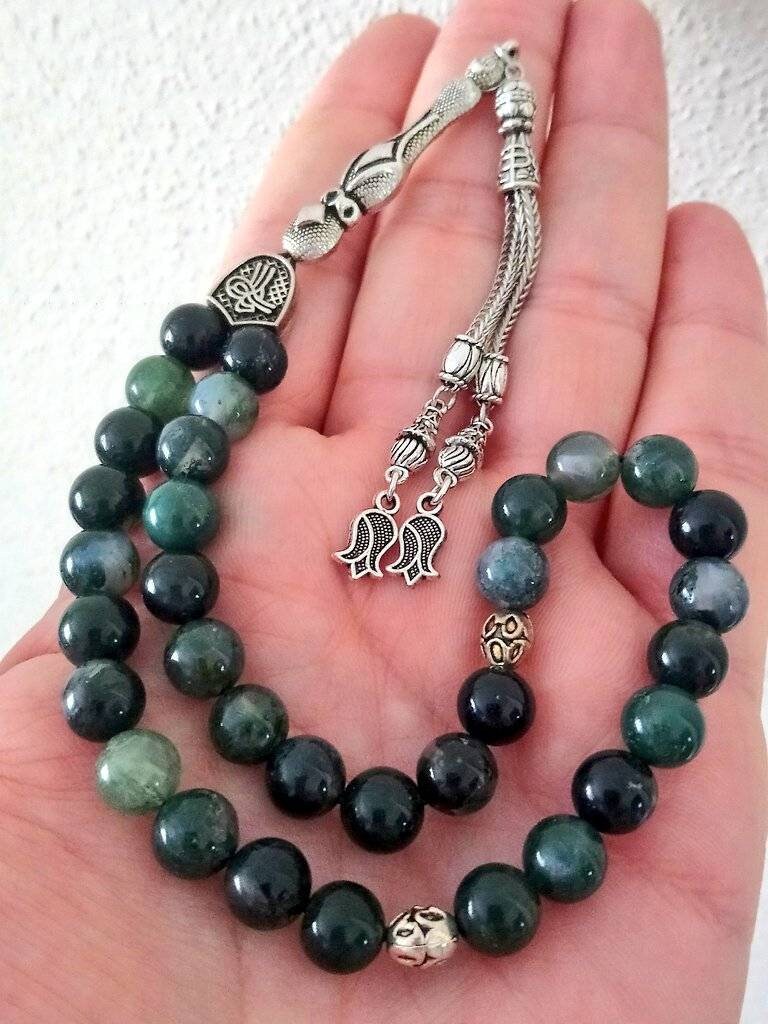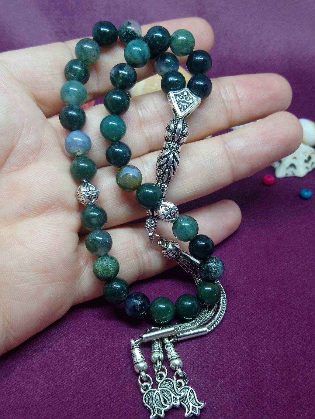 Yosunlu Akik doğal taşından yapılmış bu özel tesbih, hem şık bir aksesuar hem de enerjinizi dengelemeye yardımcı bir taş deneyimi sunar.