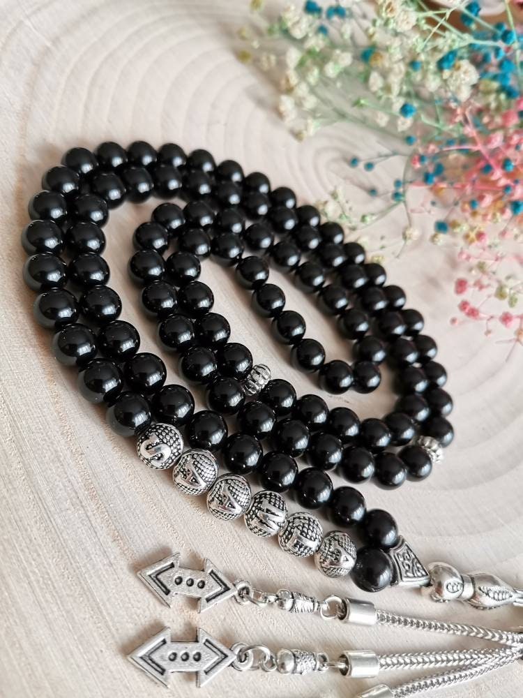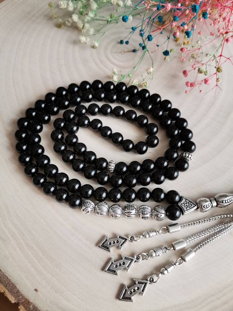 Siyah Oniks doğal taşından yapılmış bu özel tesbih, hem şık bir aksesuar hem de enerjinizi dengelemeye yardımcı bir taş deneyimi sunar.
