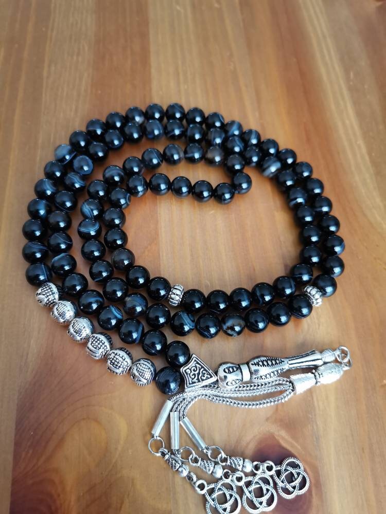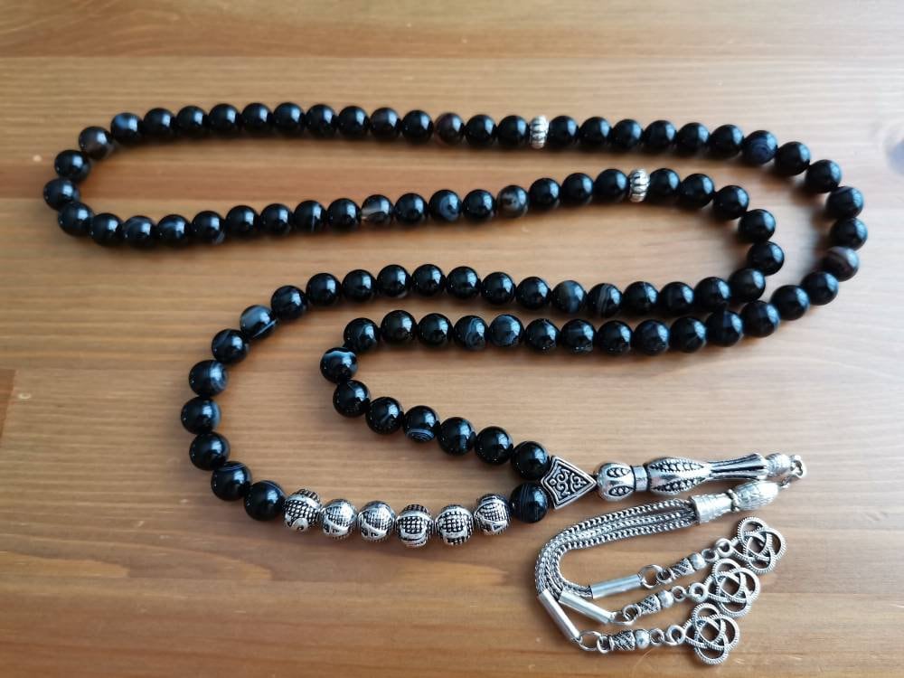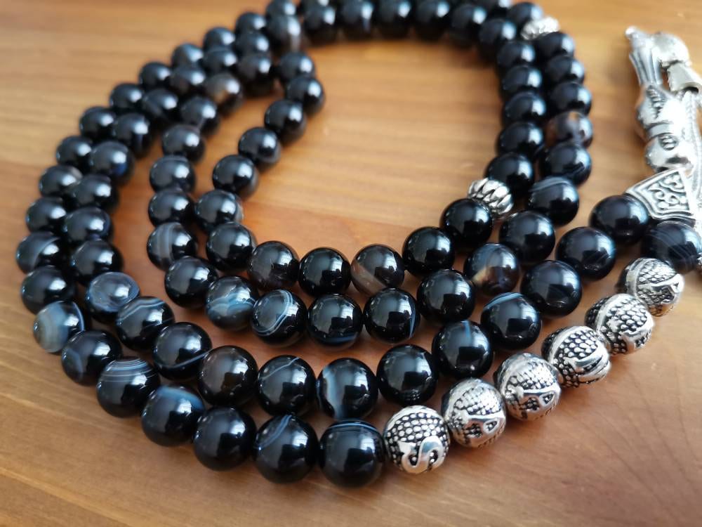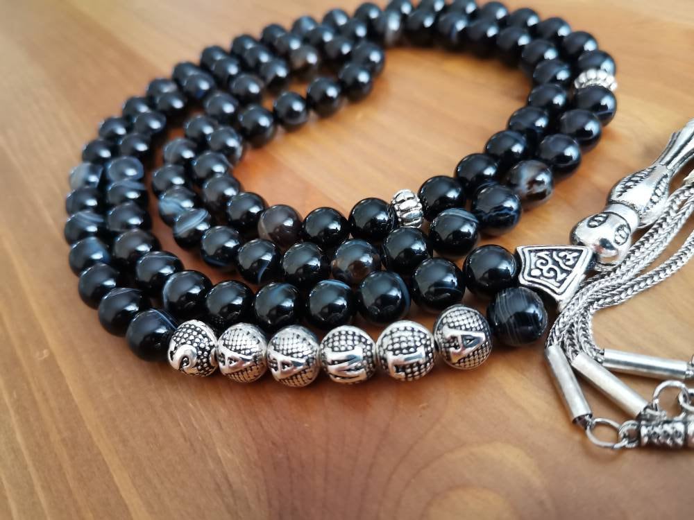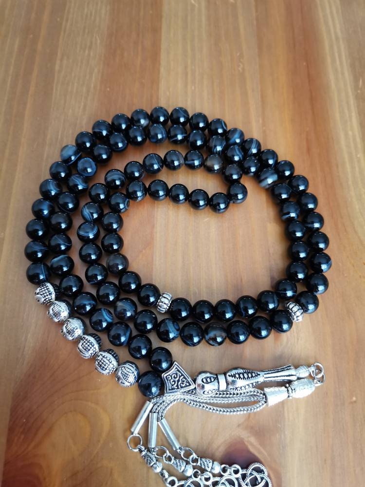 Kişiye Özel 99 Boncuklu Siyah Akik Tesbih