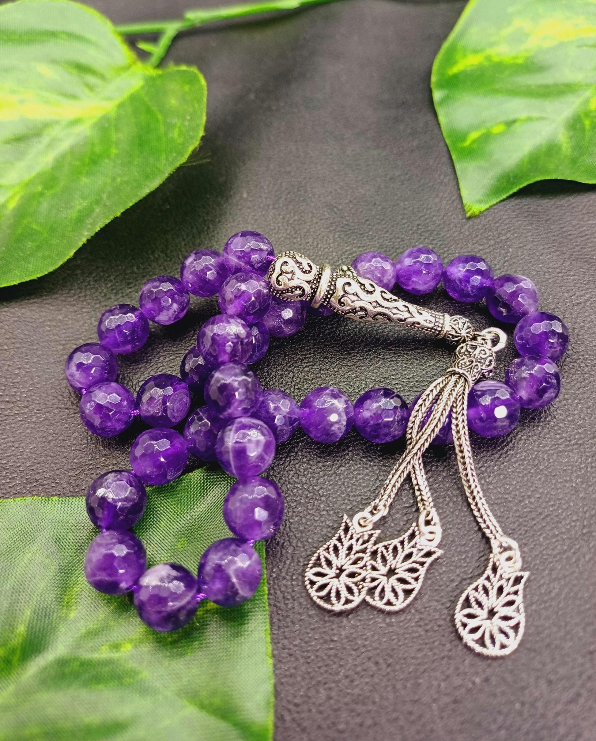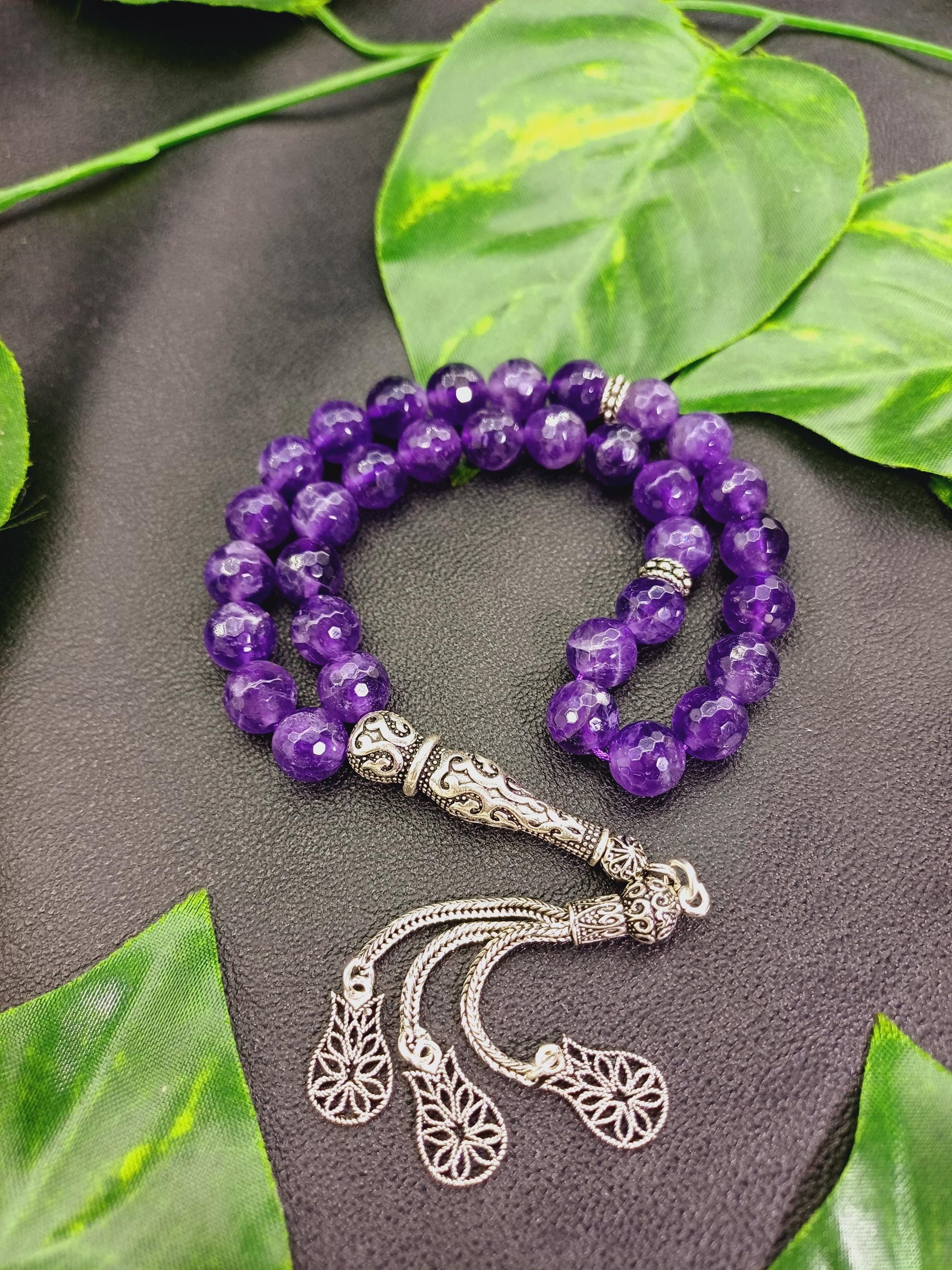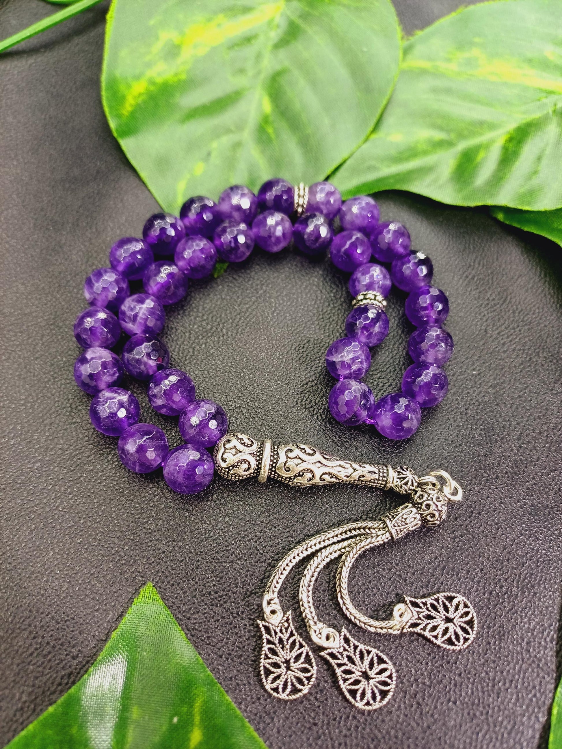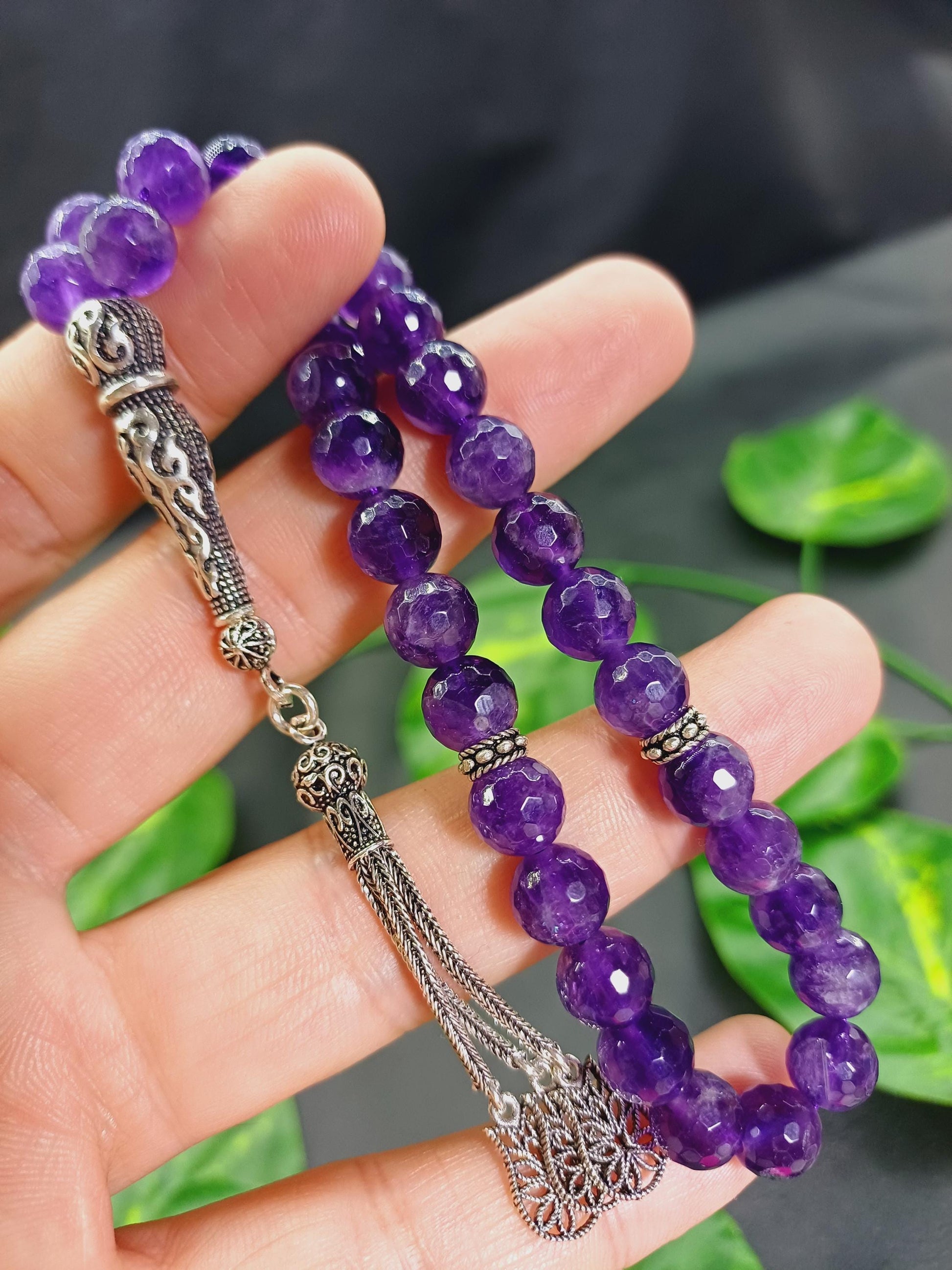 925 ayar gümüş aparatlar ve mücevher kesim Ametist doğal taştan yapılmış bu özel tesbih, hem şık bir aksesuar hem de enerjinizi dengelemeye yardımcı bir taş deneyimi sunar.