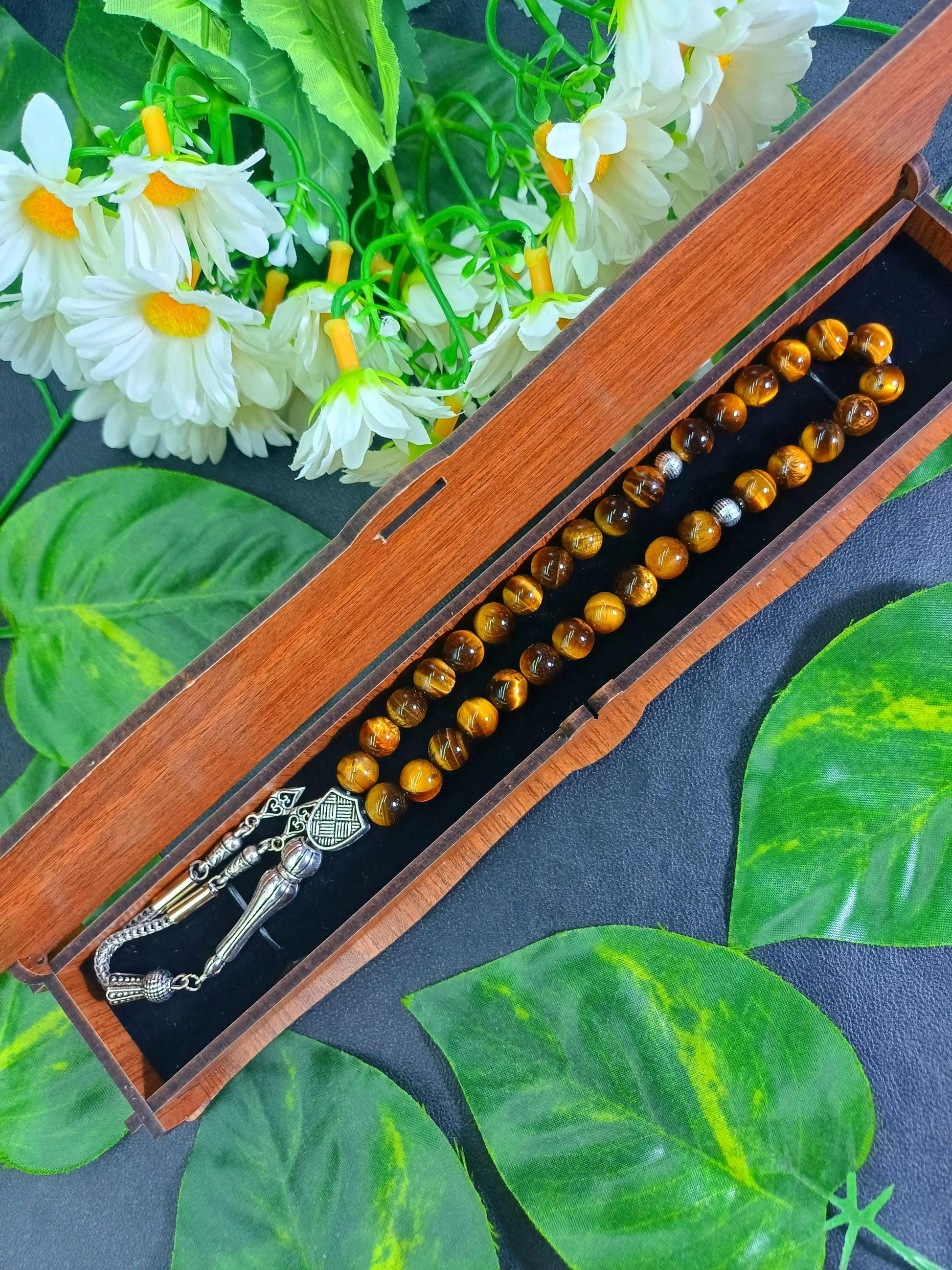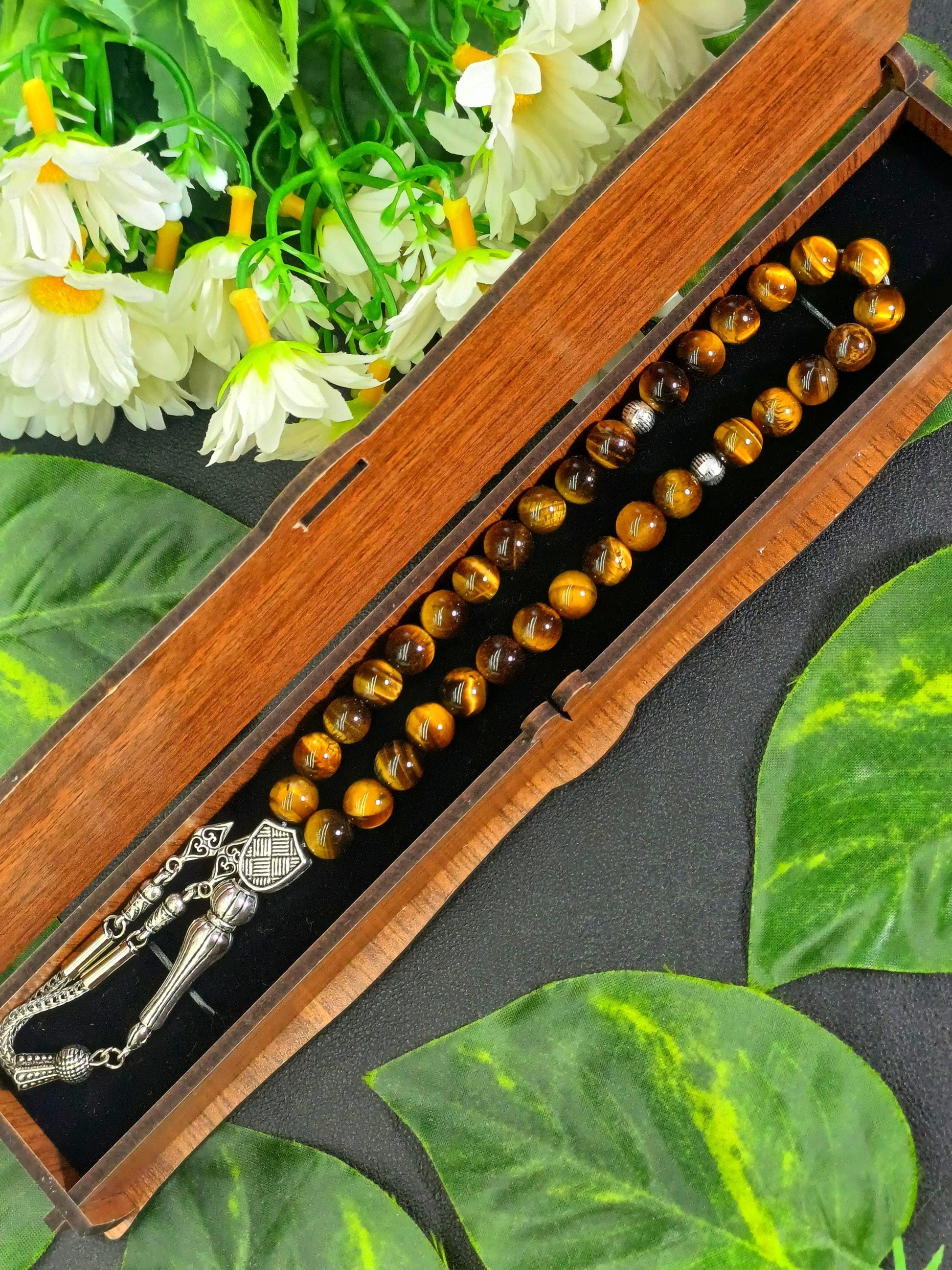 Kaplan Gözü doğal taşından yapılmış bu özel tesbih, hem şık bir aksesuar hem de enerjinizi dengelemeye yardımcı bir taş deneyimi sunar.