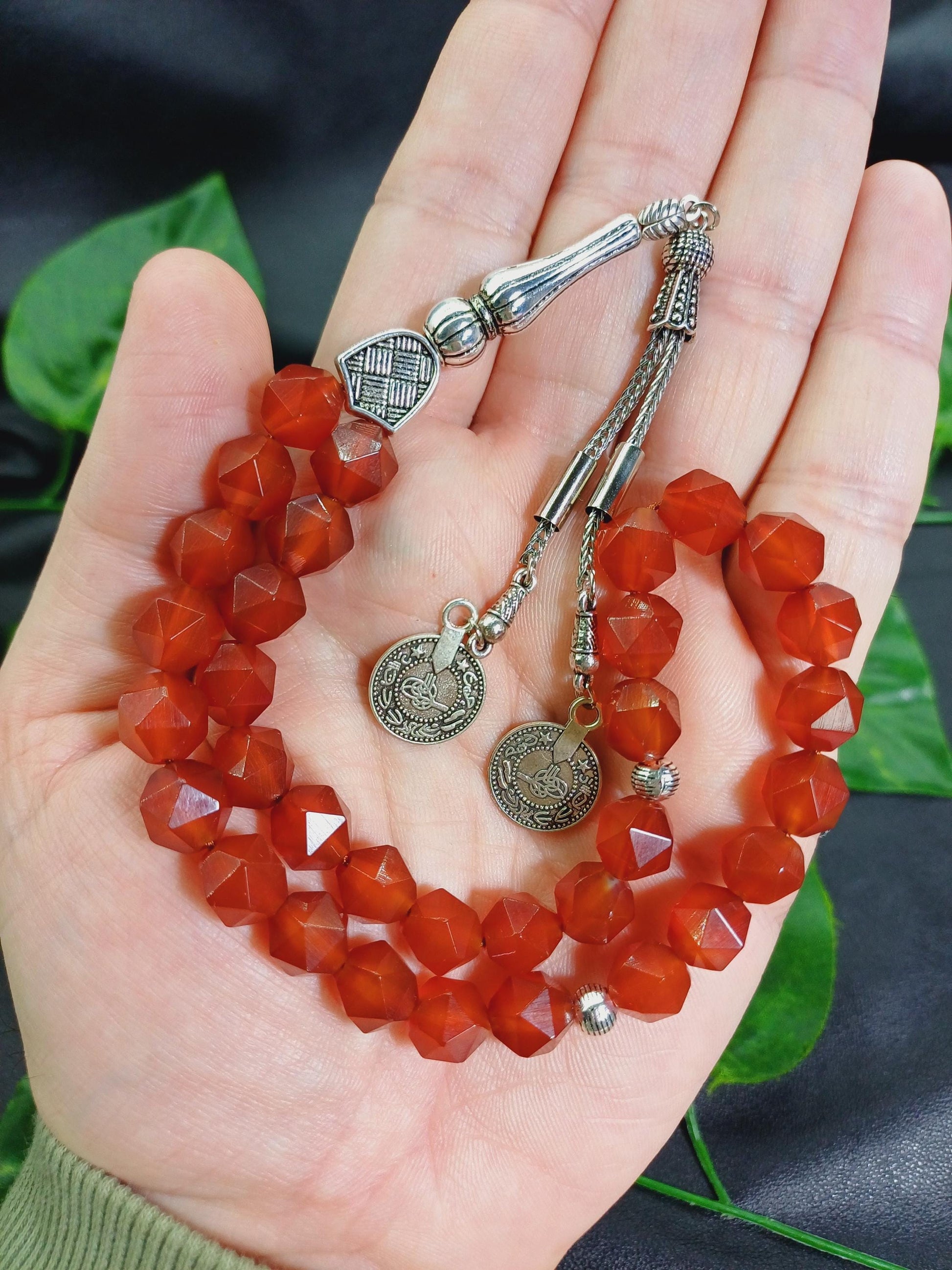 Altıgen Kesim Yemen Akik Doğaltaş Tesbih